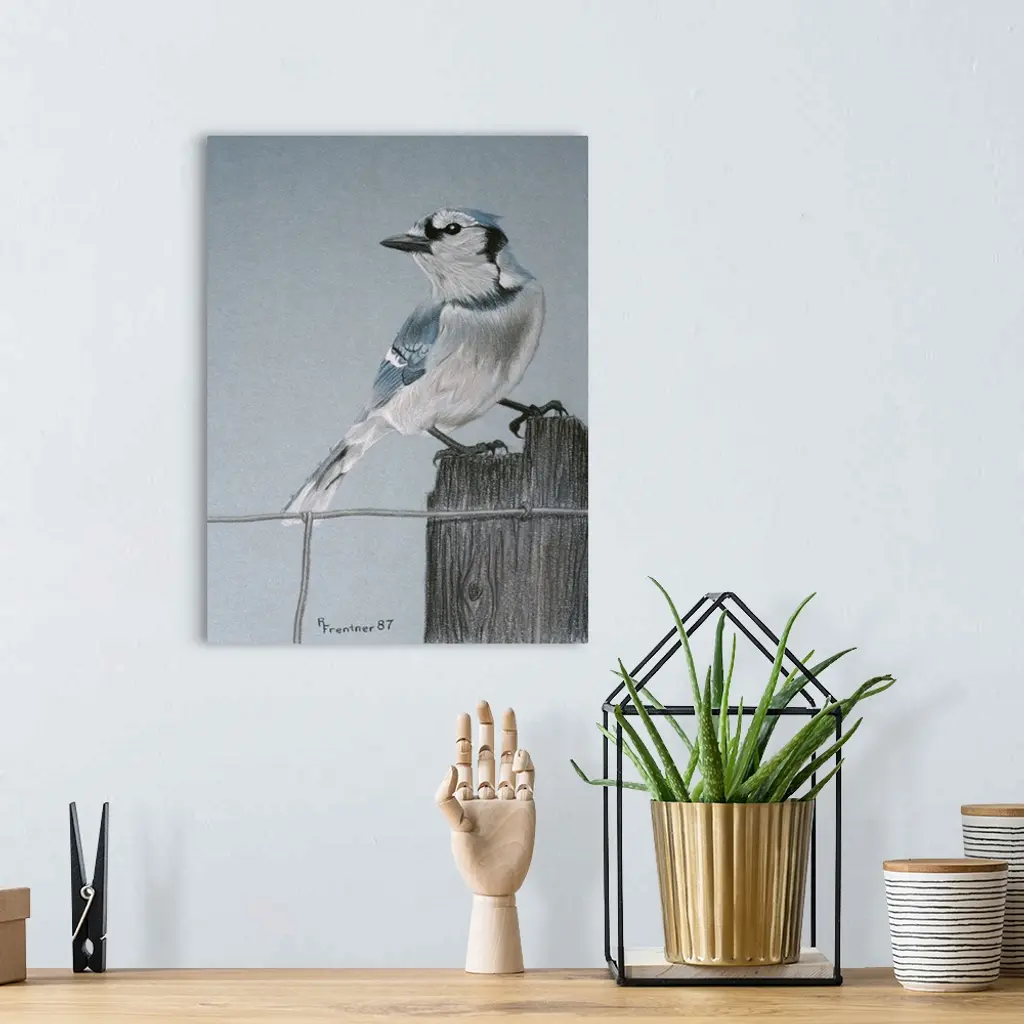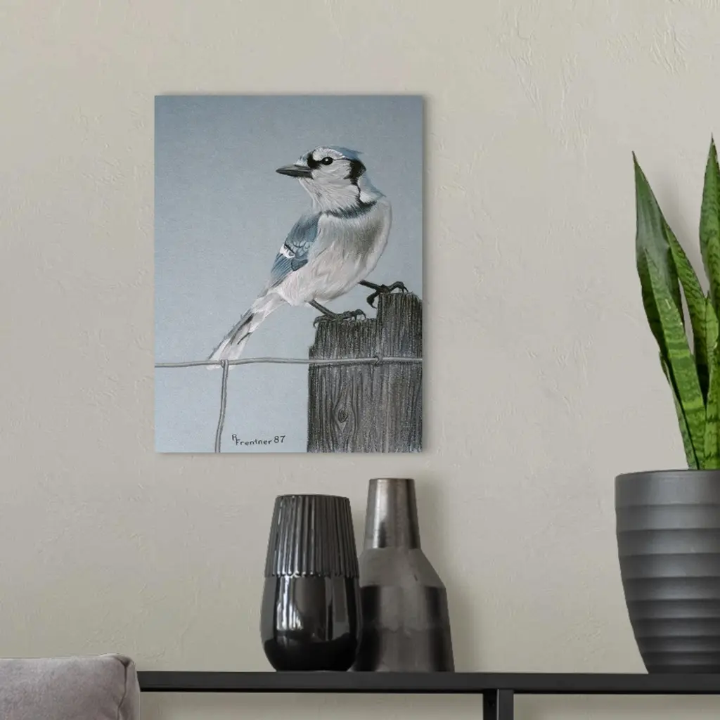 A blue-jay perched on a post