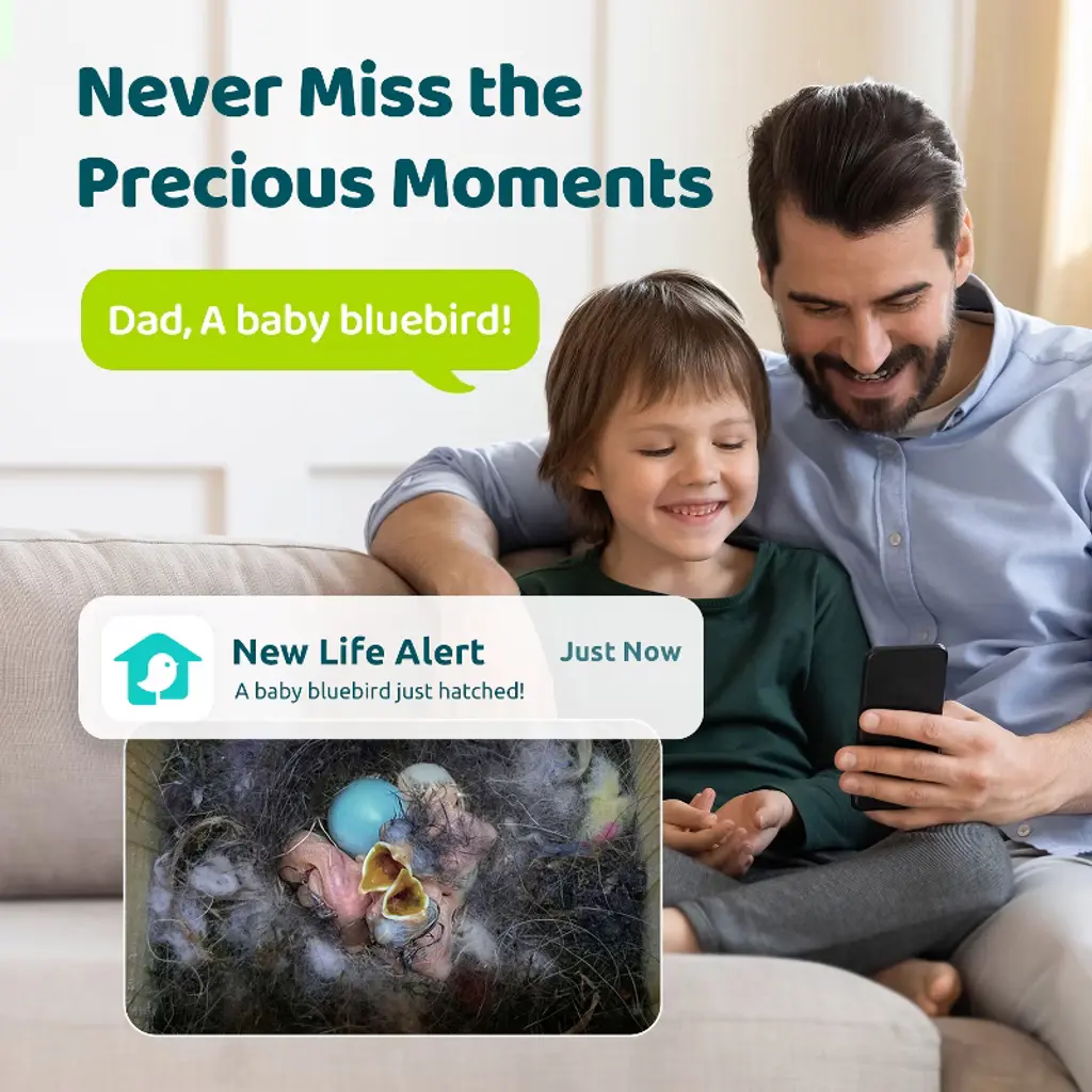 The Birdfy Nest Ebony combines modern tech and eco-friendly design to enhance your birdwatching experience. Made from durable pine wood with a sloped roof for waterproofing, it features a 2MP camera that captures nesting activities with 1080P video quality. The AI system captures highlight reels and sends notifications to your phone. With solar power and a 9000mAh battery, it’s perfect for outdoor use. Easy to install, clean, and share with up to 20 friends, it’s a must-have for bird lovers.