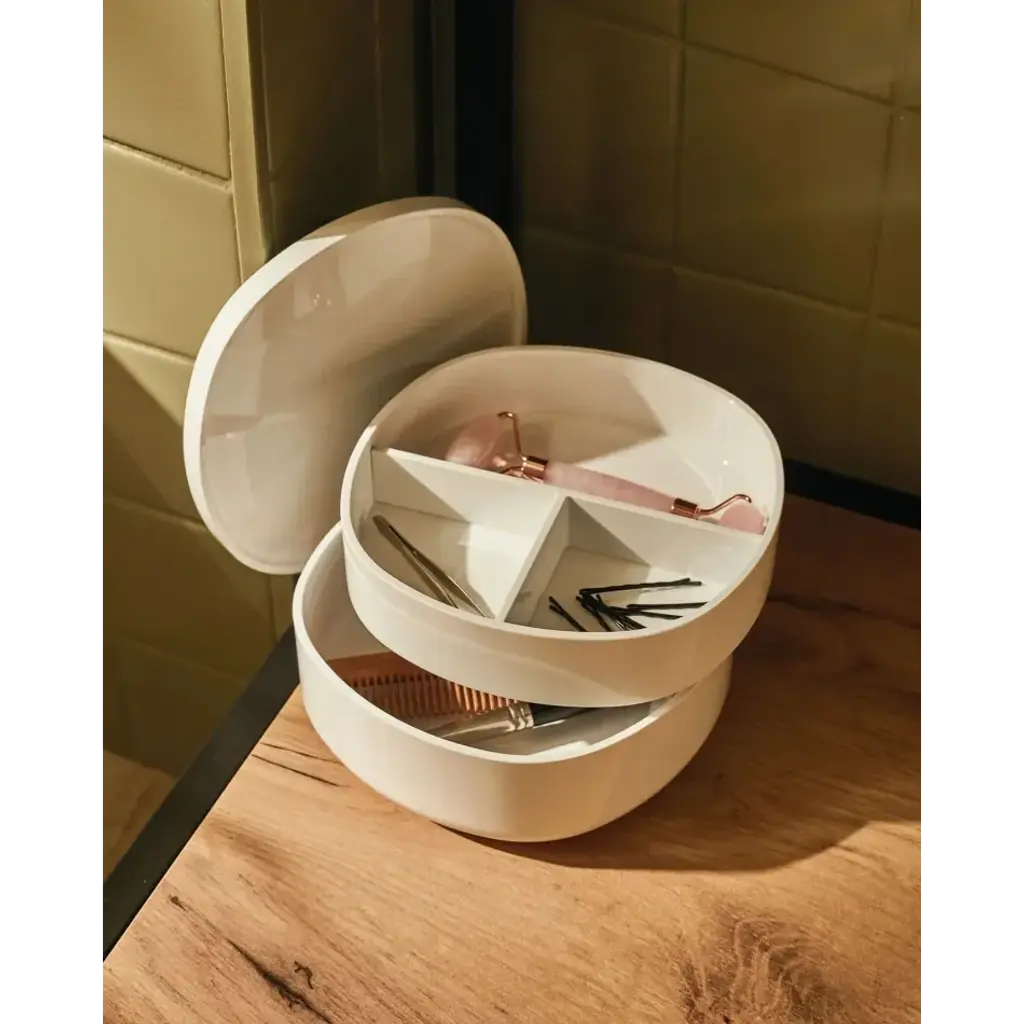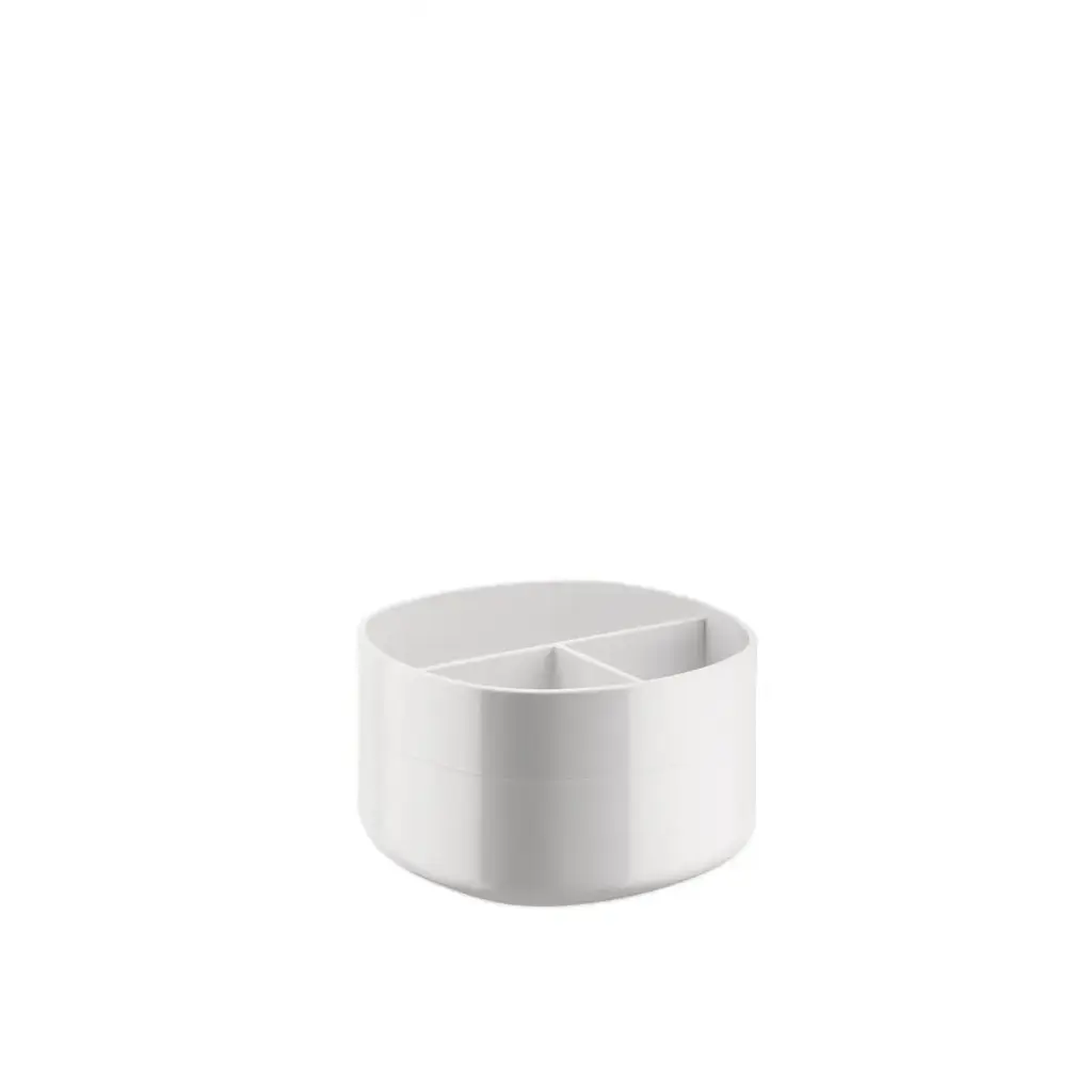 The Birillo family of bathroom objects is designed by Piero Lissoni. The balance between the minimal shape and the used materials is the main characteristic of this project. The entire range of product is minimal and essential thanks to its rectangular shape and very well finished with it's rounded edges. The objects are simple but never dull. The bathroom Container with lid and internal compartments, an extremely versatile product, is made in thick PMMA thermoplastic material with a white mirrored finish. It can be used in various ways and to store make up, hair accessories, and dental hygiene product.