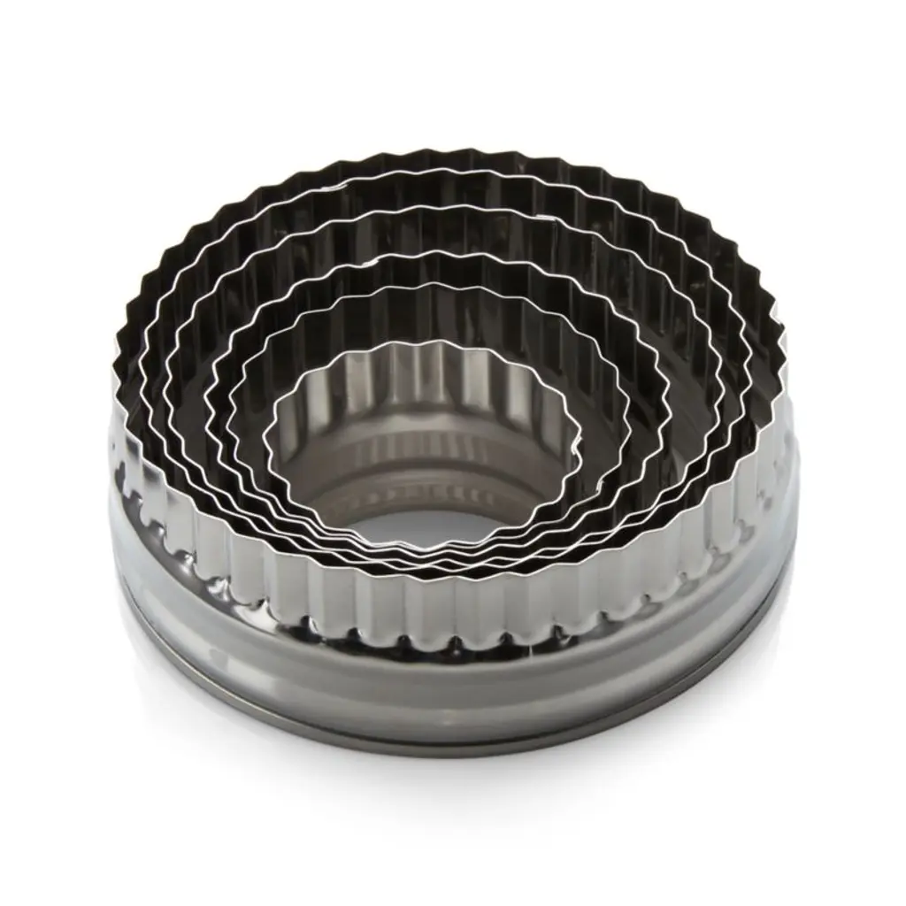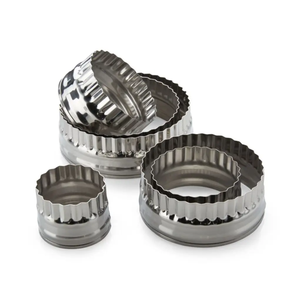 These little cutters are a classic for a reason. Each easy-to-use cutter in the set is double-edged, with one smooth edge for cutting perfect circles and one daintily fluted edge for sweetly scalloped cookies and biscuits. This set of six nests to save kitchen space, while the sturdy stainless steel construction makes for easy cleanup.