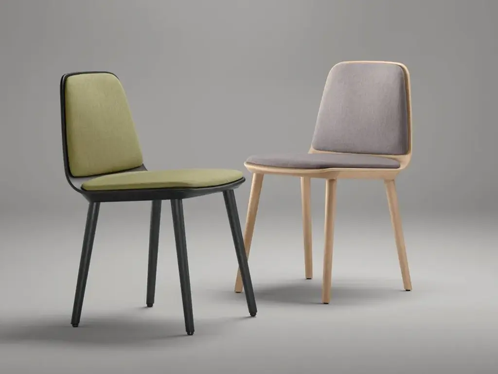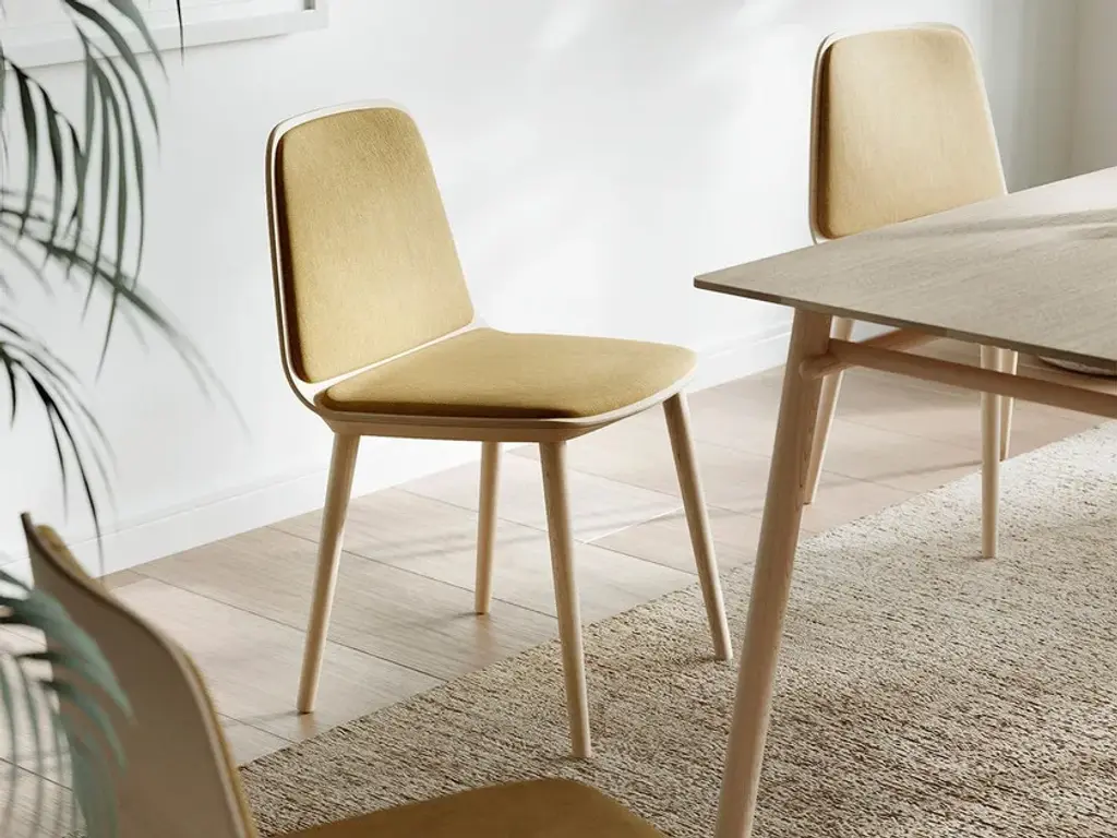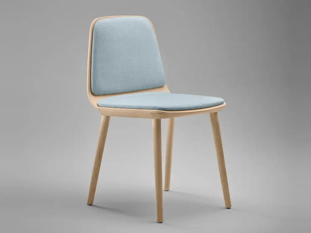 Wooden frame + 2 pads.Traditional and modern styles are perfectly balanced in the serene and discreet design of the Bisell chair which blends Treku features into warm and intimate settings. Its simple design combines a wooden top, solid wood and upholstery to obtain distinct finishings which, together with different wooden and metal bases, make it suitable for a variety of settings and uses, whether in the home or office.