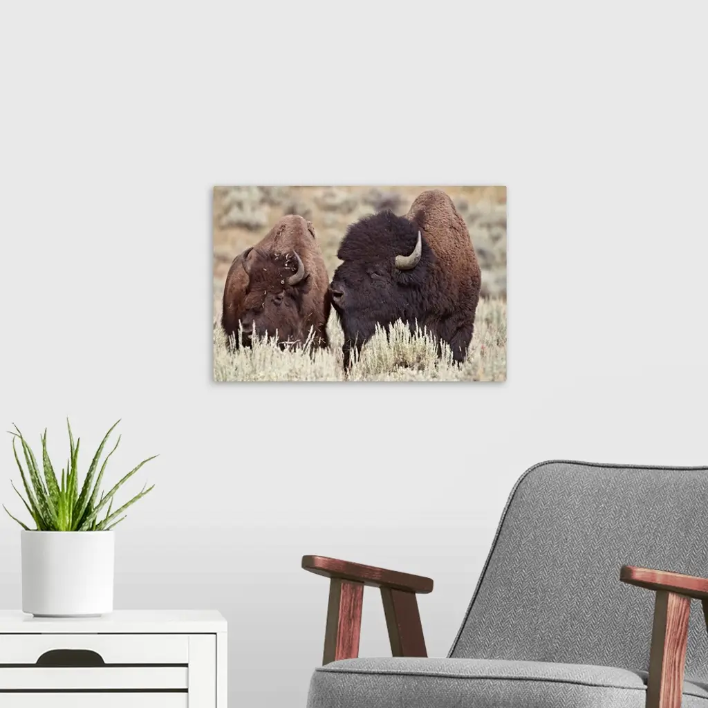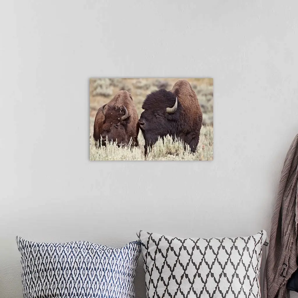 Bison bull and cow, Yellowstone National Park, Wyoming wall art for home and office decor. Discover canvas art prints, photos, mural, big canvas art and framed wall art in GreatBigCanvas.com's varied collections.