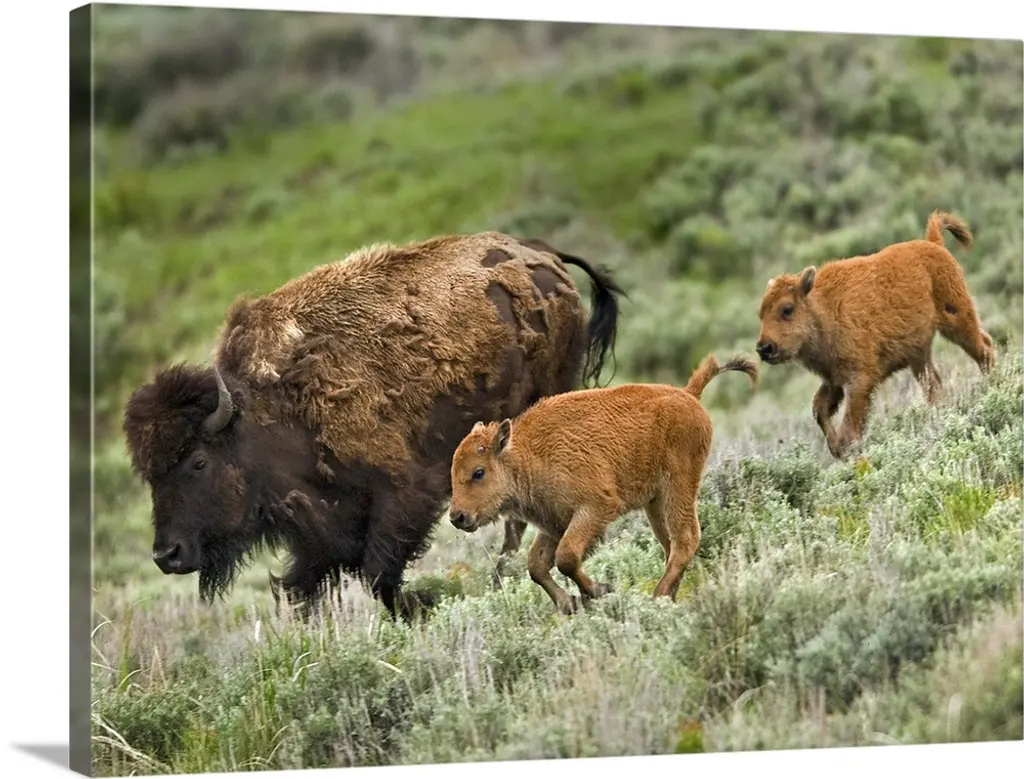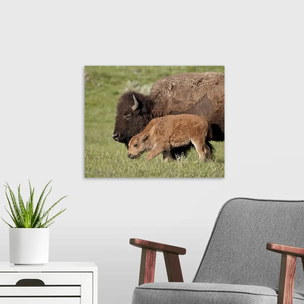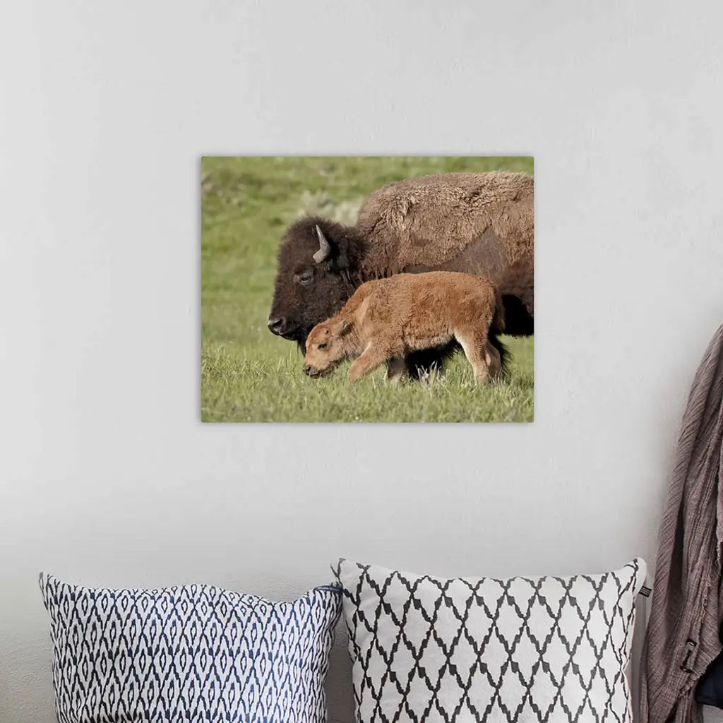 Bison, cow and calf, Yellowstone National Park, Wyoming wall art for home and office decor. Discover canvas art prints, photos, mural, big canvas art and framed wall art in GreatBigCanvas.com's varied collections.