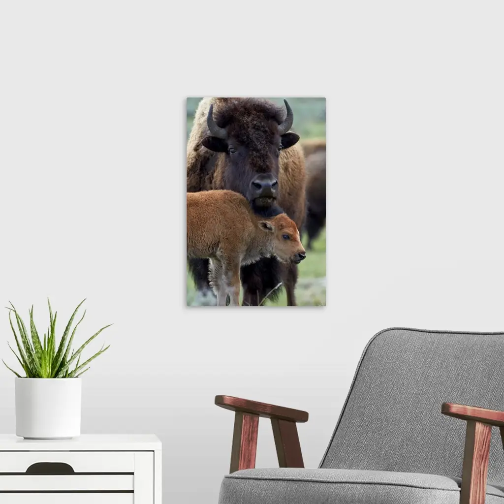 Bison Cow And Calf, Yellowstone National Park, Wyoming