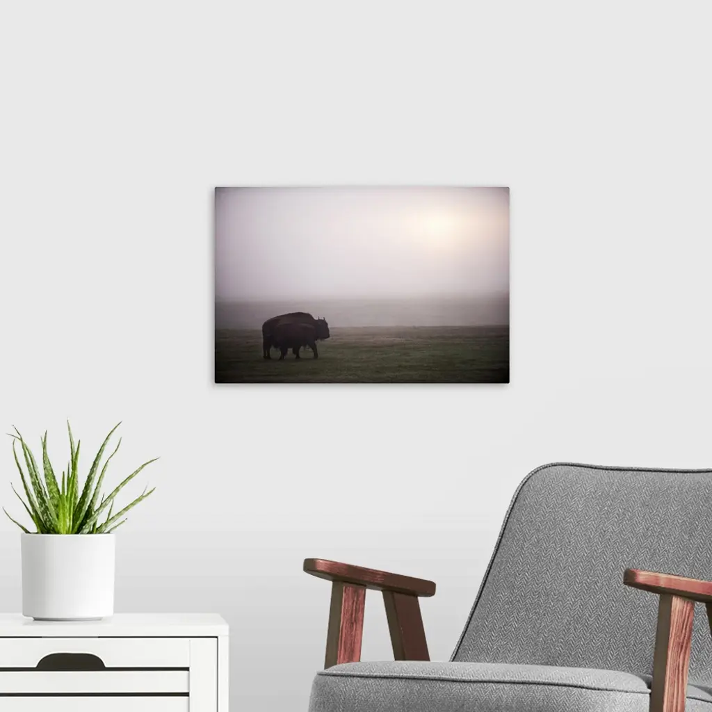 Bison In Field Of Mist