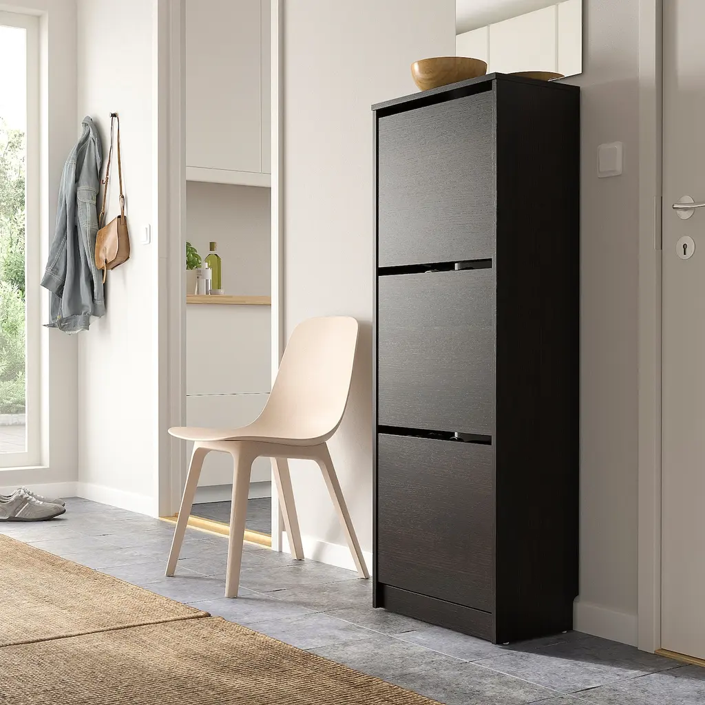 BISSA Shoe cabinet with 3 compartments - black-brown 19 1/4x11x53 1/8 ". Helps you organize your shoes and saves floor space at the same time. You can easily adjust the space in the shoe compartments by moving or taking away the dividers. Holds up to 12 pairs of shoes.