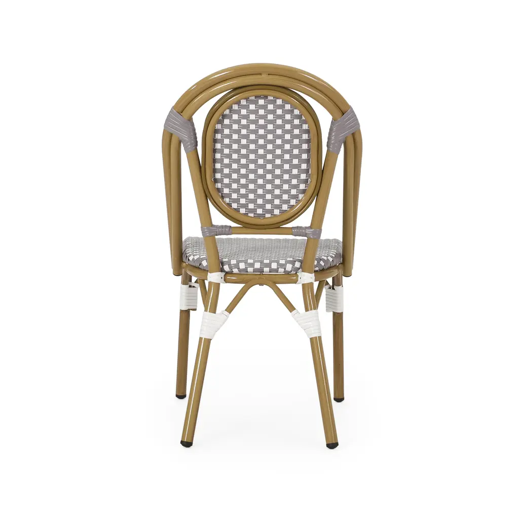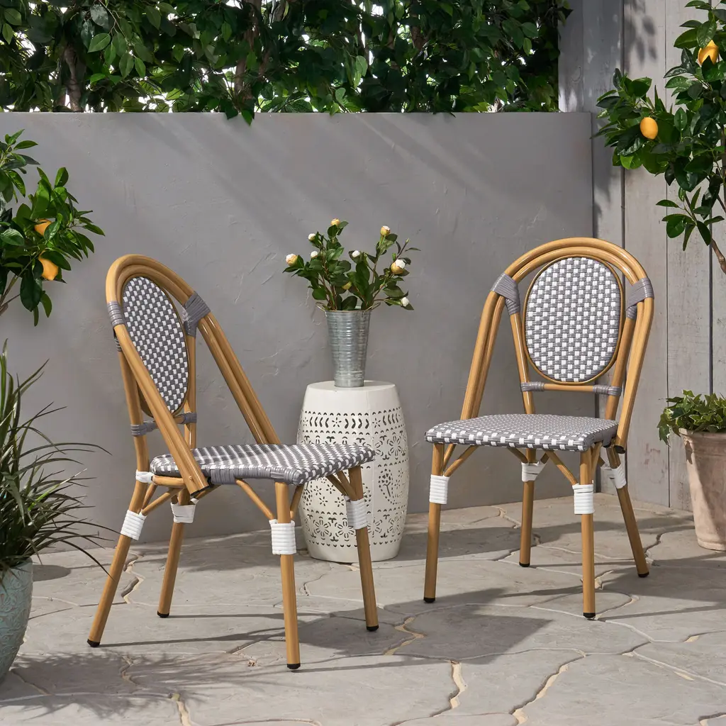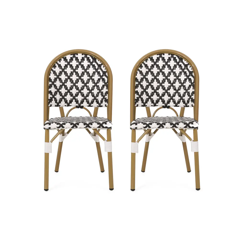 Introduce a touch of charm with this set of 2 bistro chairs. Inspired by classic design, they bring timeless elegance to any space. The durable aluminum frame ensures lasting support and style. A woven polyethylene rattan finish adds texture and resilience for everyday use.