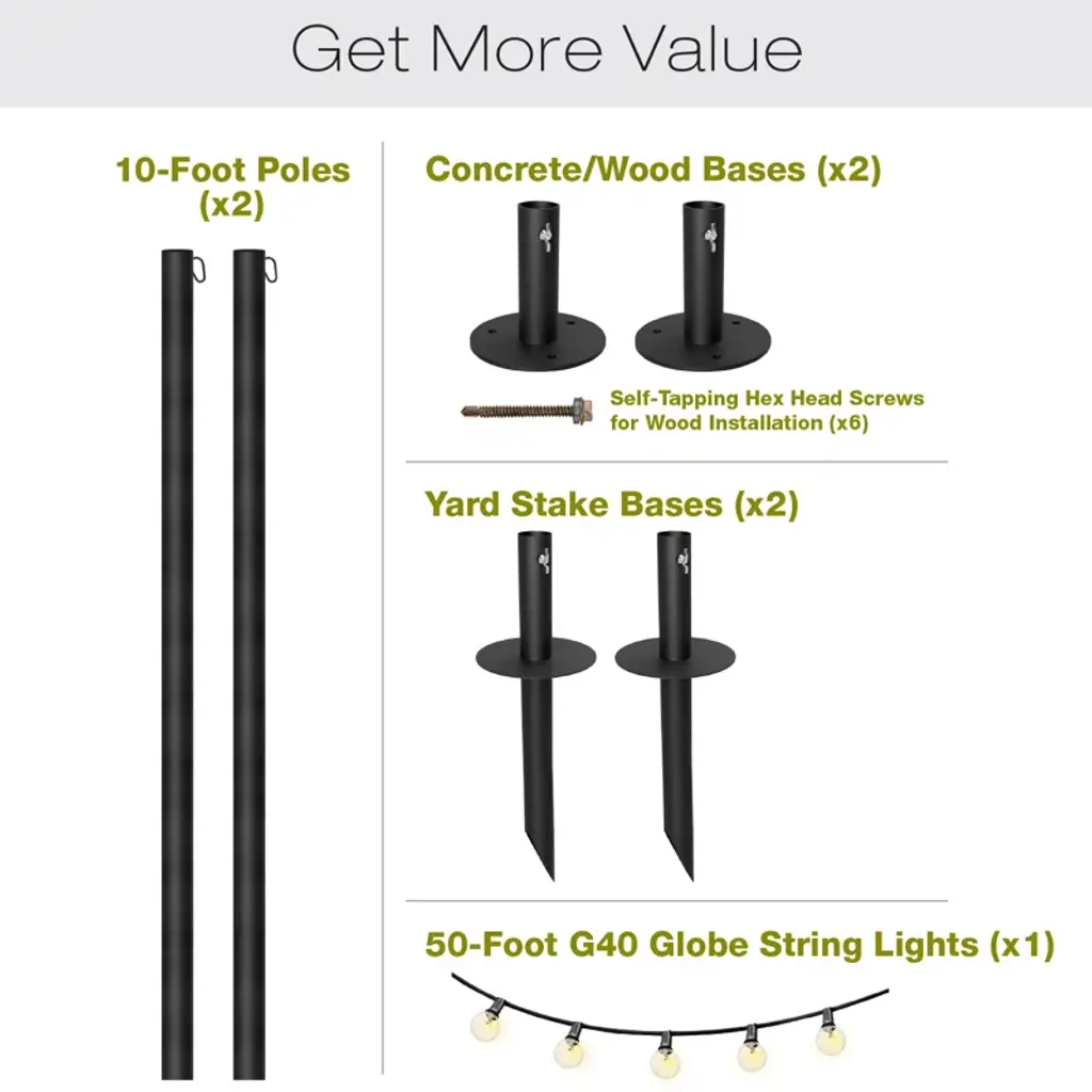 Bistro String Light Poles & 50ft Of String Lights (Set Of 2)