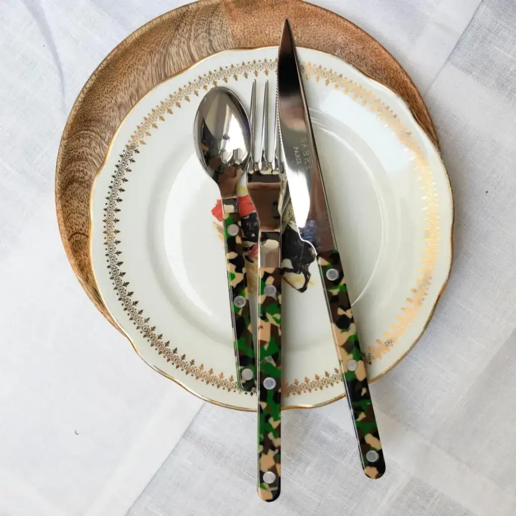 Established in France in 1993 by Francis Gelb, Sabre Paris is renowned for the vast assortment of printed mix-and-match acrylic designs in its library. All pieces made in France using 18/10 stainless steel. Dishwasher safe.