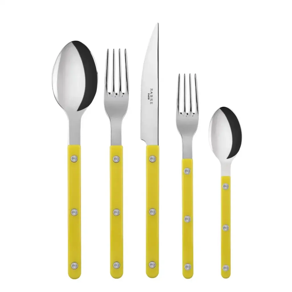 With the Bistrot collection, we were inspired by some of our favorite places: restaurants, terraces and cafés. When designing this cutlery we wanted to faithfully capture the atmosphere while adding a modern touch: the styling is simple, the rivets are visible, while the colors and materials stand out nicely. Available with gloss or vintage finishes, we’re sure you’ll enjoy this collection, which is designed to be both traditional and contemporary at the same time. Established in France in 1993 by Francis Gelb, Sabre Paris is renowned for the vast assortment of printed mix-and-match acrylic designs in its library. All pieces made in France using 18/10 stainless steel. Dishwasher safe.