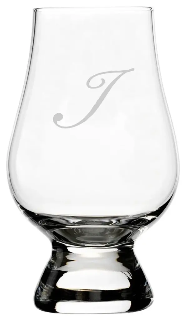 Etched Laser Art is proud to offer these engraved glasses at a great price!All Whiskey glasses are made of lead free crystal and come individually gift boxed.The glasses are 2.5 inches wide and 4.5 inches tall and holds up to 6.5 ounces.Notice the design of the glass, the tapering mouth allows an ease of capturing the aromas on the nose. The wide bowl allows for the fullest appreciation of the Whiskey's color. This truly makes this "The Official Whiskey Glass"These glasses are the Official Glencairn Glasses from the Glencairn Crystal factory in Scotland. The bottom of each glass is engraved with "The Glencairn Glass"**All monogram engraving is done in-house, not by the manufacturer in Scotland.***Choose your letter from the options above ^Official Resellers of the Glencairn Whiskey Glass from ScotlandComes Individually Packaged in the Official Glencairn Gift BoxMonogram is Engraved With Highest DetailSatisfaction Guaranteed!