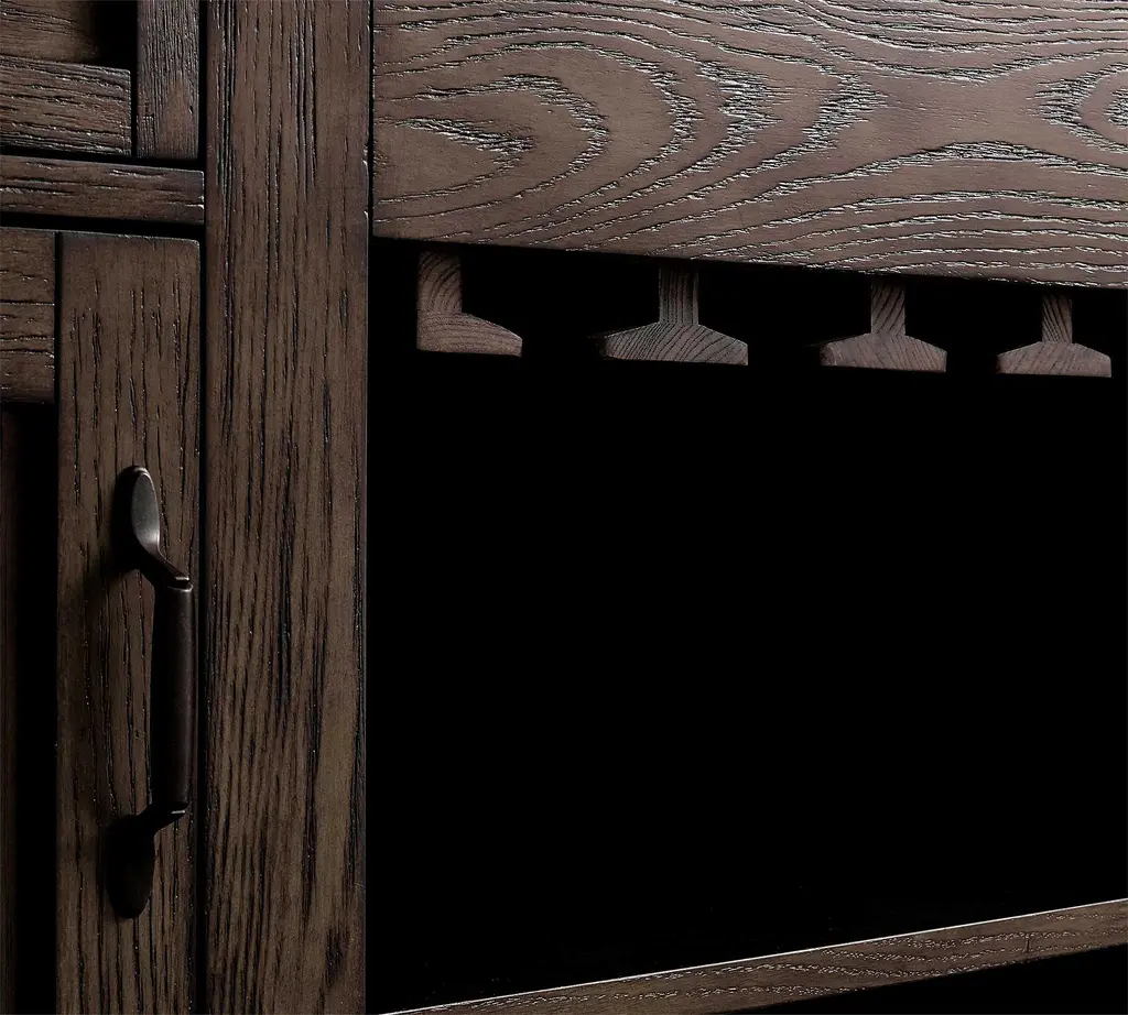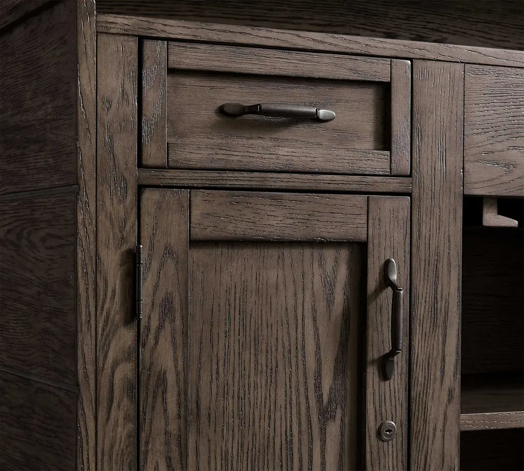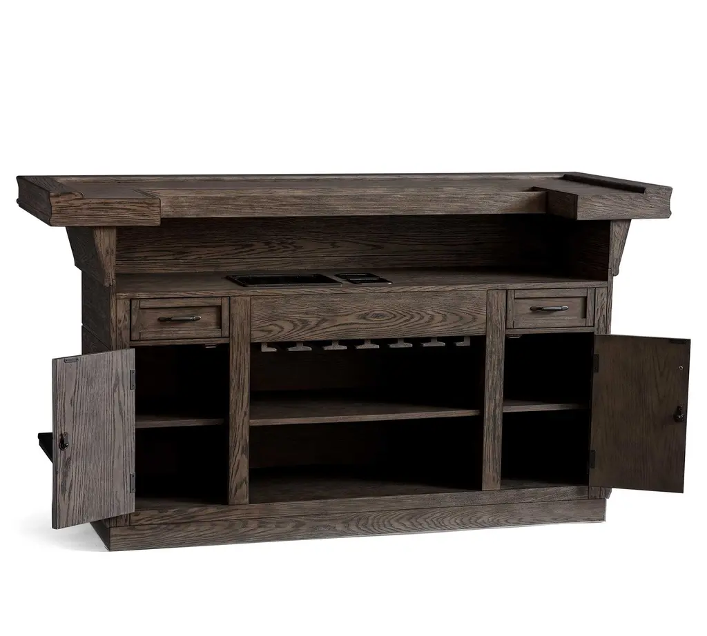 The ultimate home bartender setup. Grand in size and transitional in style, the Bixby Bar has ample storage for glasses, tools, mixers and more. The exclusive charcoal finish, which shows off the wood’s intricate grain in a stunning way, matches the Bixby Pool Table for an entertaining area that’ll be the best spot in town. Outfit your entire space with coordinating barstools, back bar, and bar mirror (sold separately).