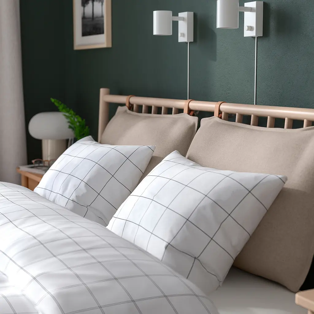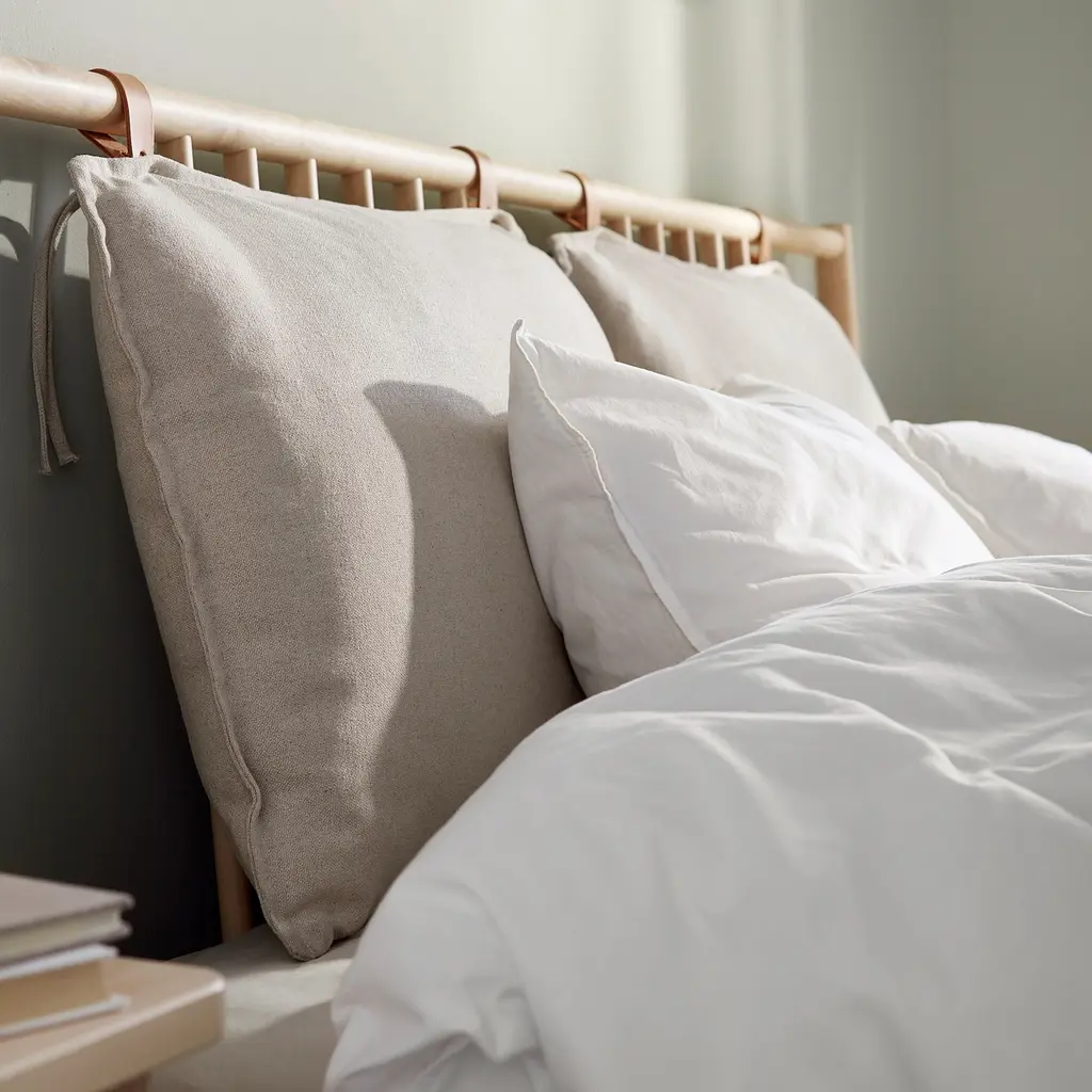 BJÖRKSNÄS Bed frame - birch/birch veneer/Lönset King. Beautiful craftsmanship all the way around. Why not place it in the middle of the room to create impact? You can sit up comfortably in bed thanks to the 2 pillows attached to the headboard. 2 headboard pillows included.