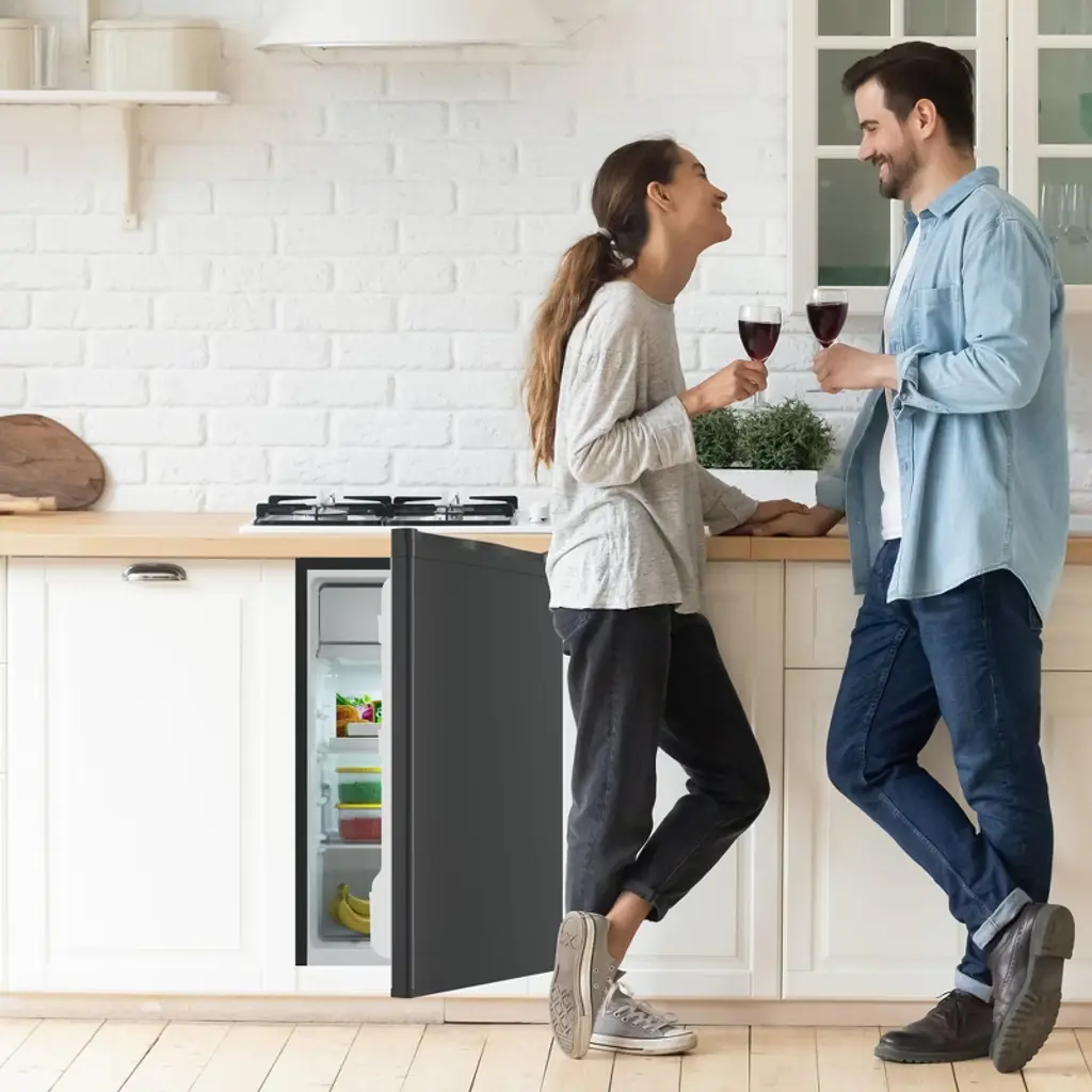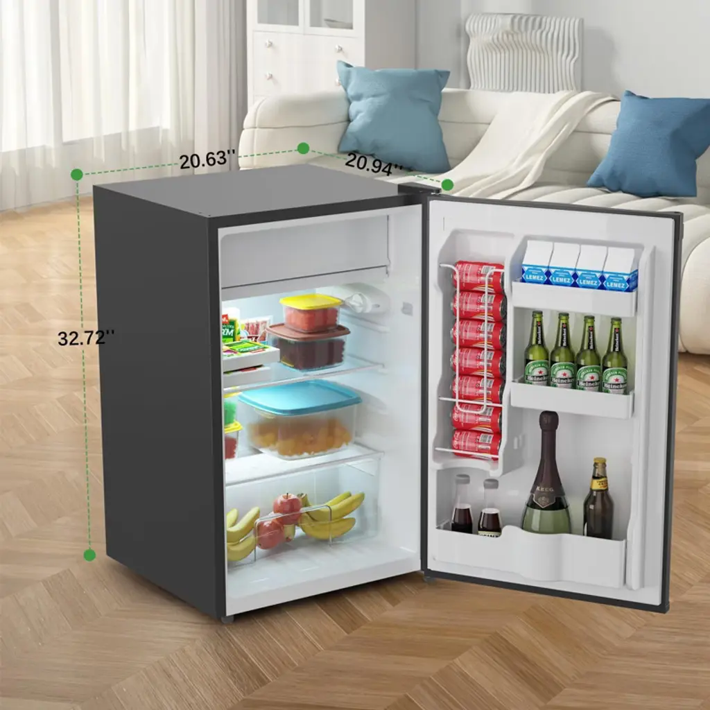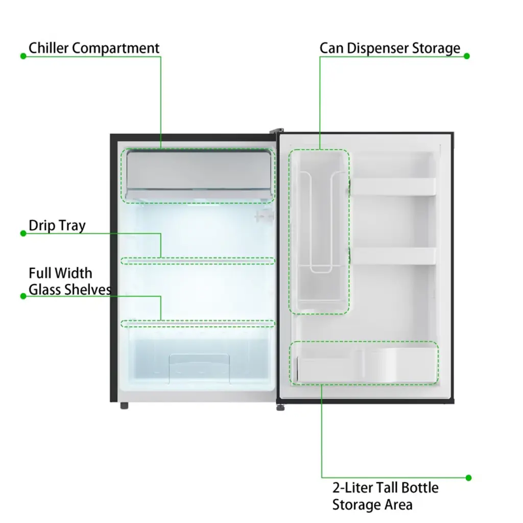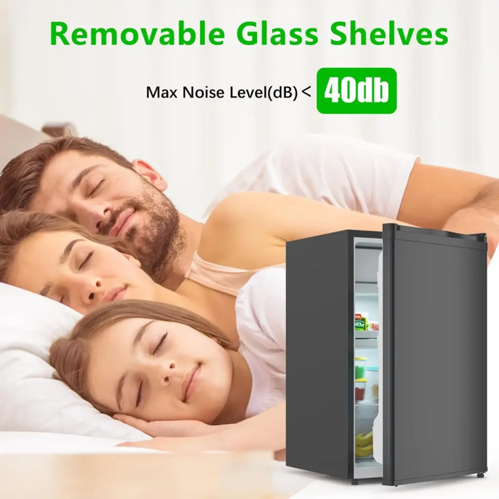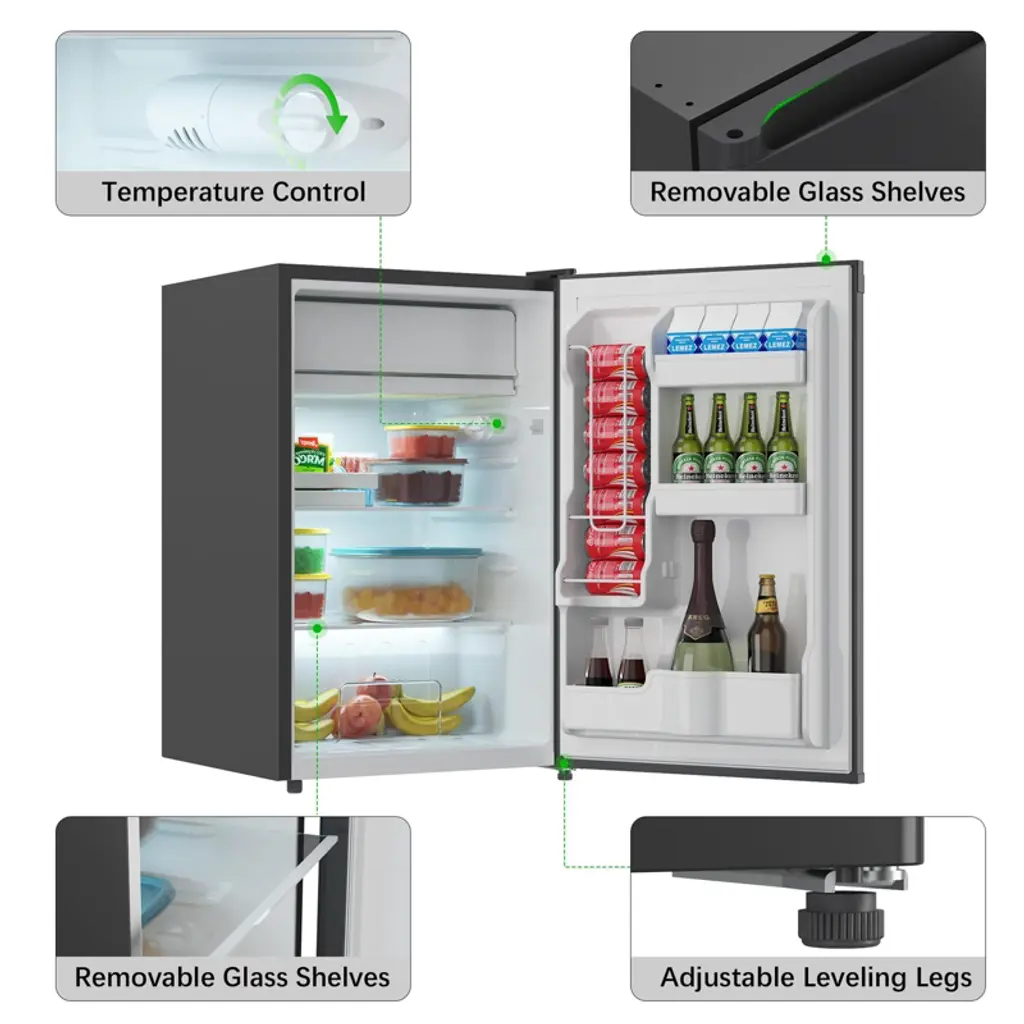 This 4.4 cu. ft mini fridge features an adjustable thermostat (32°F–50°F), removable glass shelves, a crisper drawer, and quiet operation, perfect for dorms, offices, and small spaces. Key Features: ✔ Spacious 4.4 Cu.Ft Capacity – Ideal for beverages, snacks, and fresh food storage. ✔ Adjustable Temperature Control – 7-level thermostat for precise cooling. ✔ Versatile Storage – Includes 3 removable glass shelves and a crisper drawer. ✔ Quiet & Energy-Efficient – Silent operation with low power consumption. ✔ Space-Saving Design – Reversible door and adjustable legs for flexible placement.