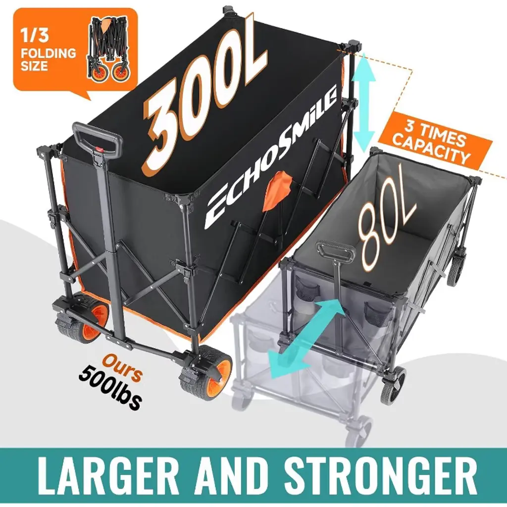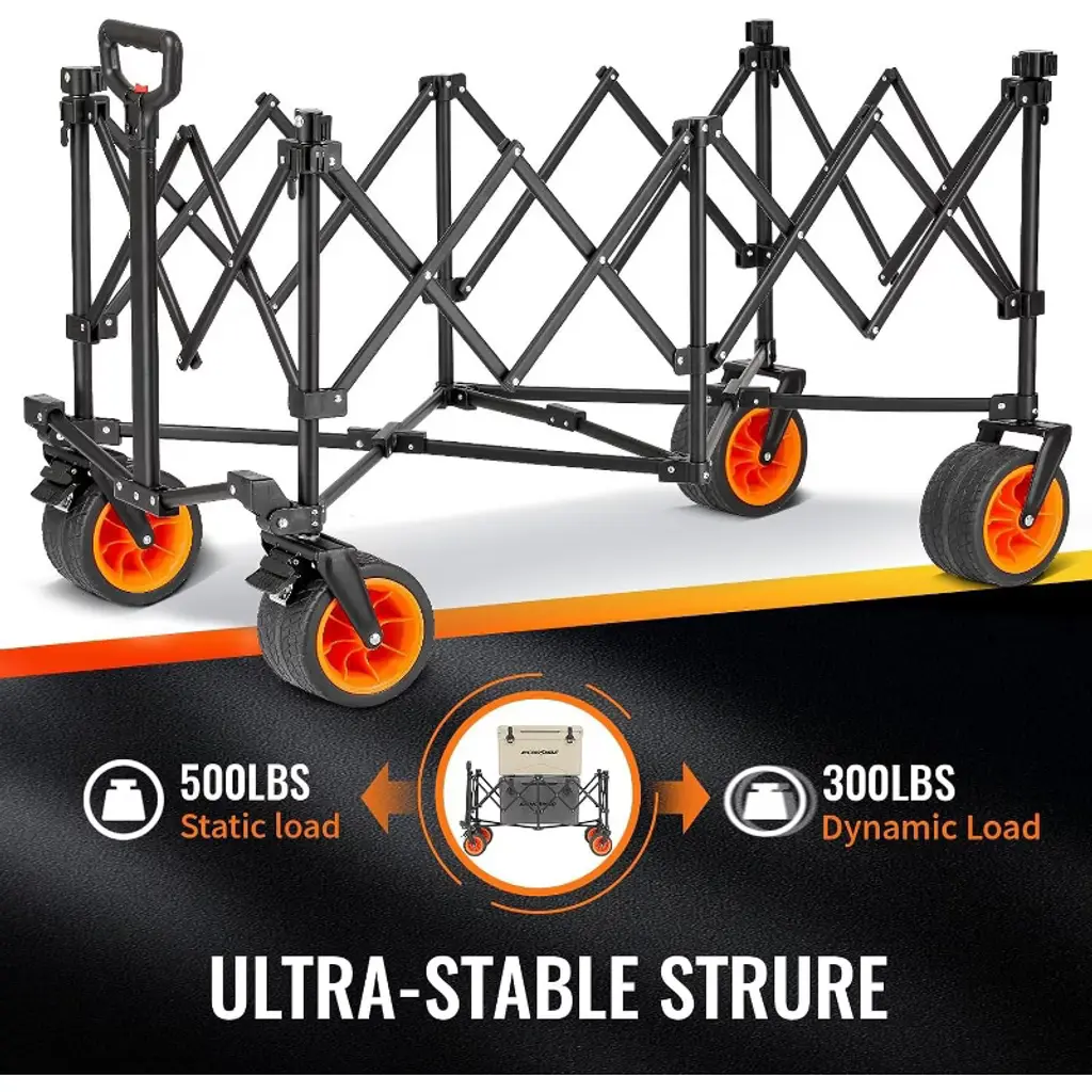 Black And Orange Color-blocked, Gathering And Heightened, Telescoping Camping Cart