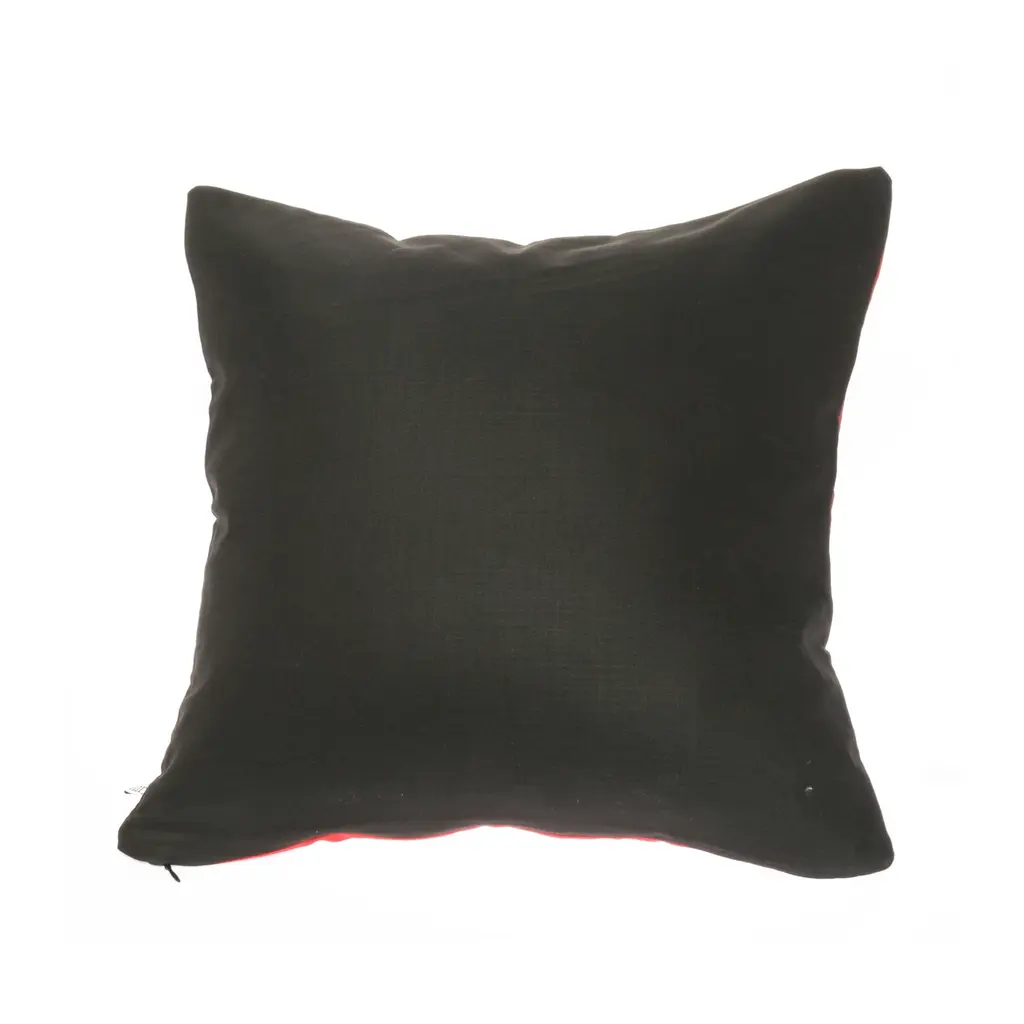 Black and Red satin cushion has zipped closure. The cushion comes with its inner cushion pad. The color block cushion adds a touch to your living room