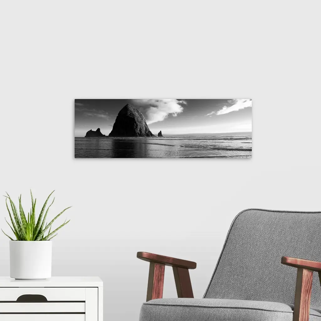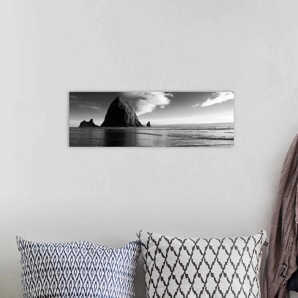 Black And White Haystack Rock, Cannon Beach, Oregon - Panoramic