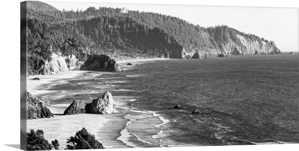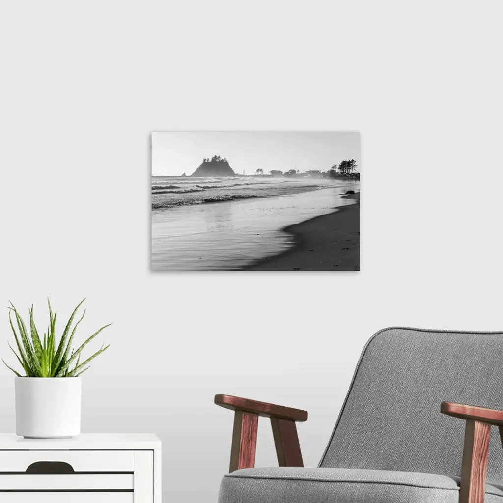 Black And White La Push Beach Shore, Washington, Usa