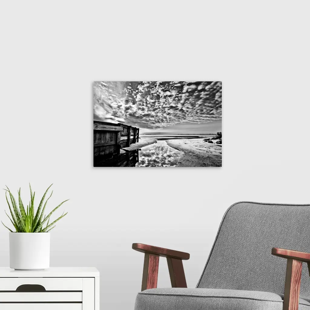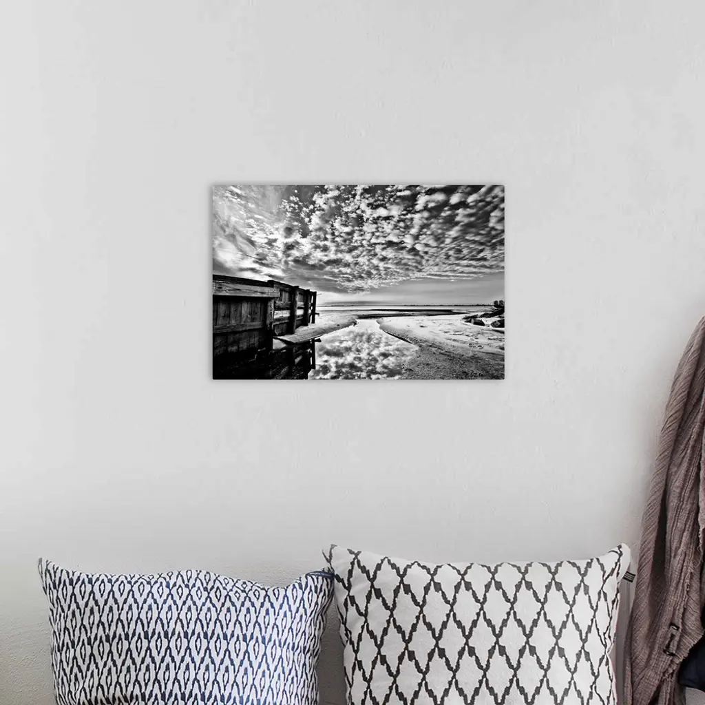 Black And White Popcorn Clouds Sky-Wooden Fence