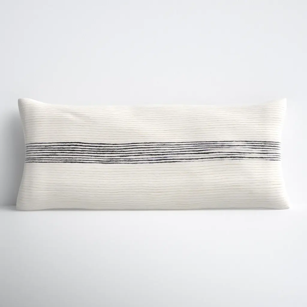Black And White Quilted Color Block Velvet Lumbar Throw Pillow