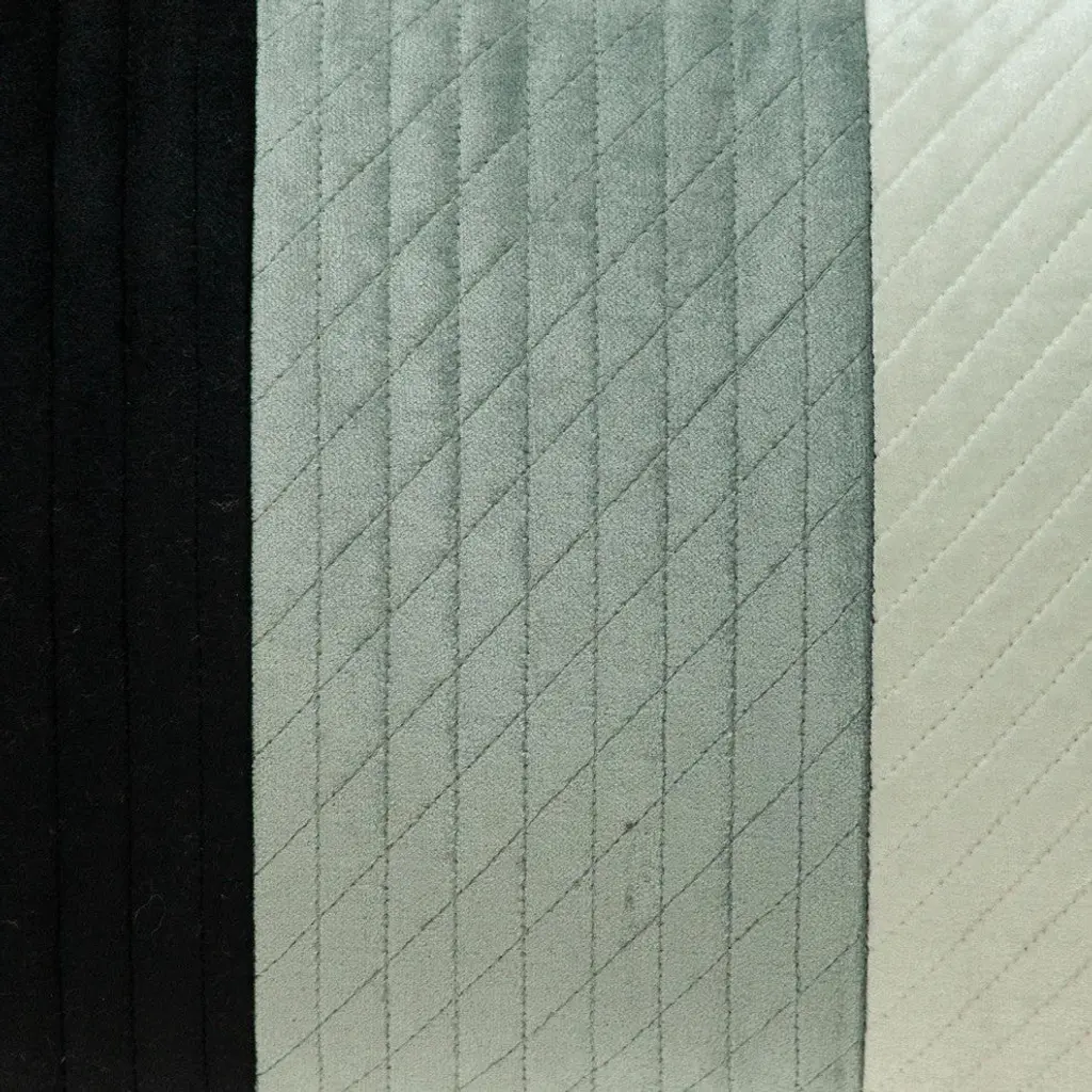 Crafted to perfection the Black and White Quilted Colorblock Velvet Lumbar Throw Pillow will completely revitalize your personal space. The beautiful soft and fluffy velvet texture of the quilt workmanship is distinctly visible in it''s vertical and diagonal lines, that deliver exquisite comfort. Easy cleaning of the cushion is offered in terms of a hidden zipper that is neatly concealed on the bold color background. Fall into complete pleasure with this three color toned throw pillow skillfully designed to complement your delicate decor space. 12" x 24" x 4"