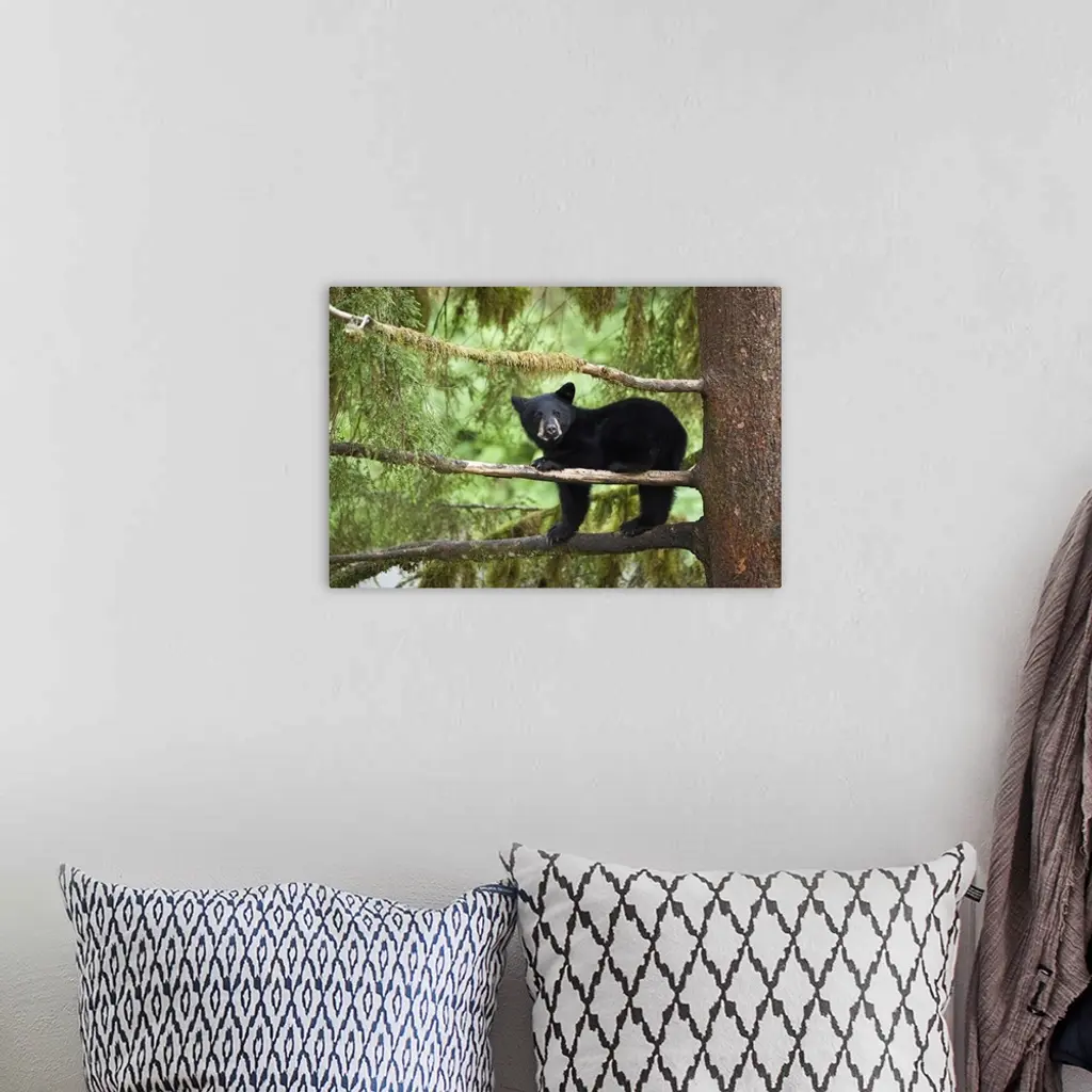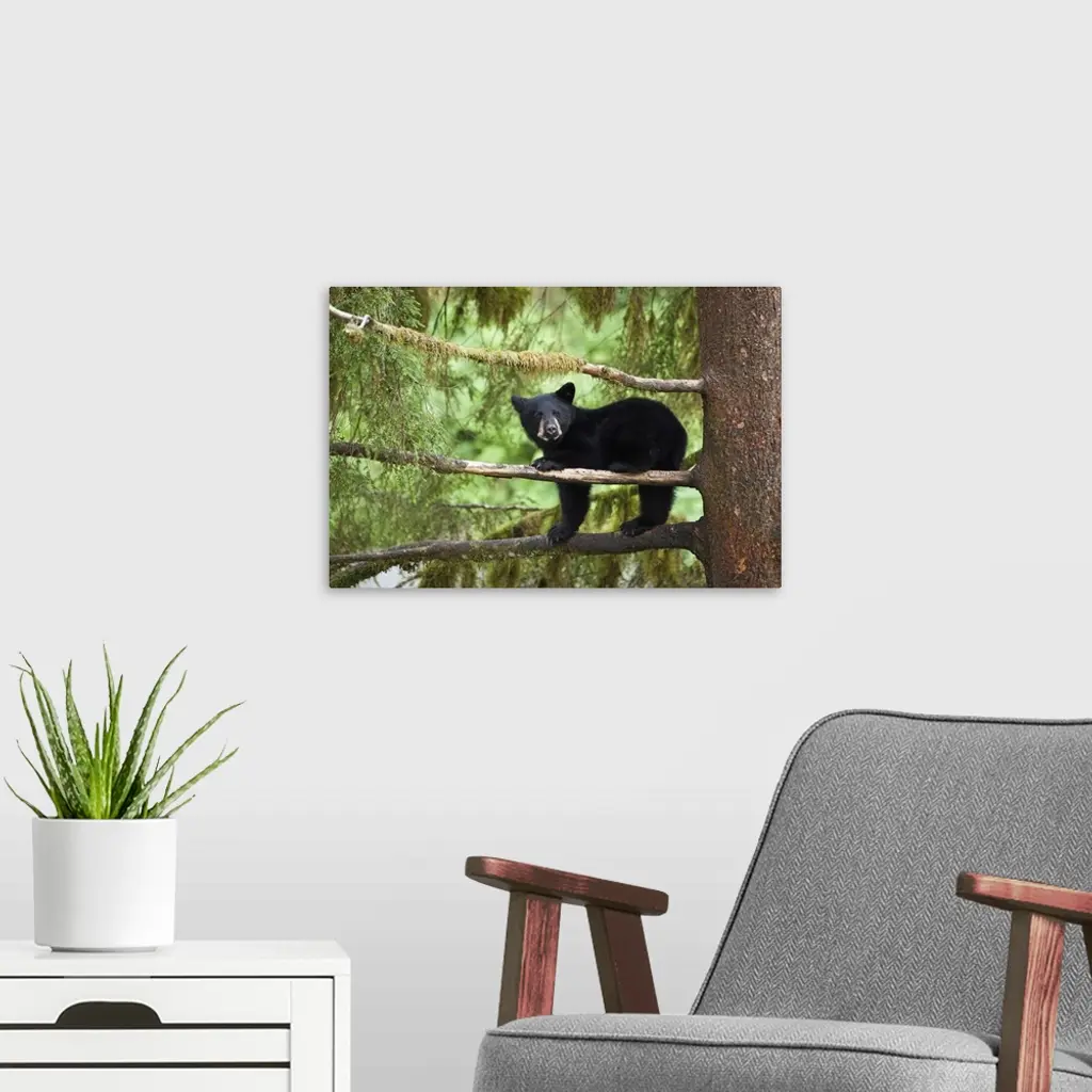 Black Bear (Ursus Americanus) Cub In Tree, Tongass National Forest, Alaska