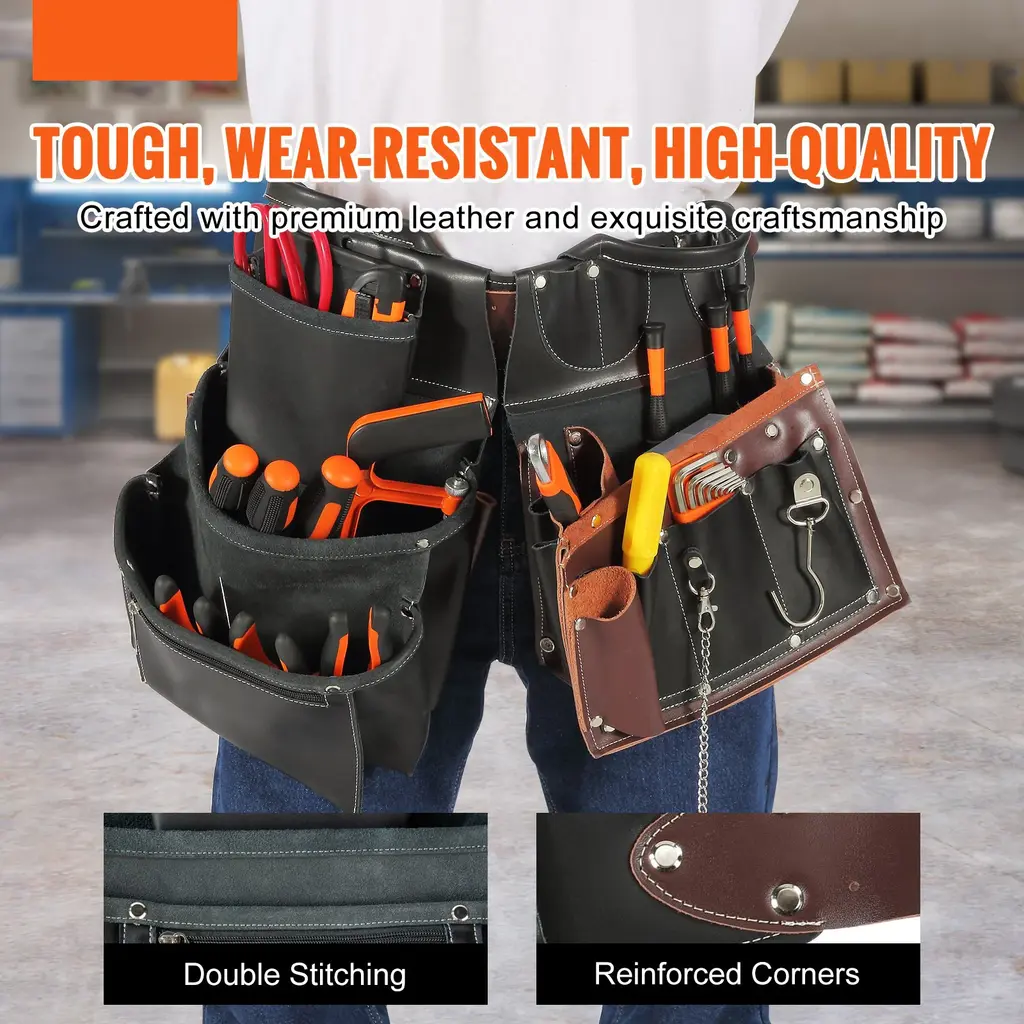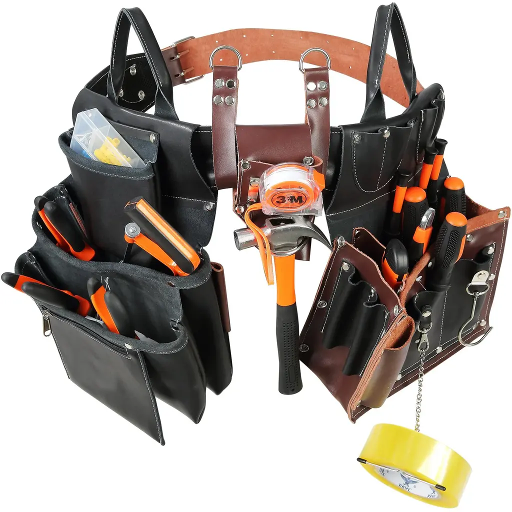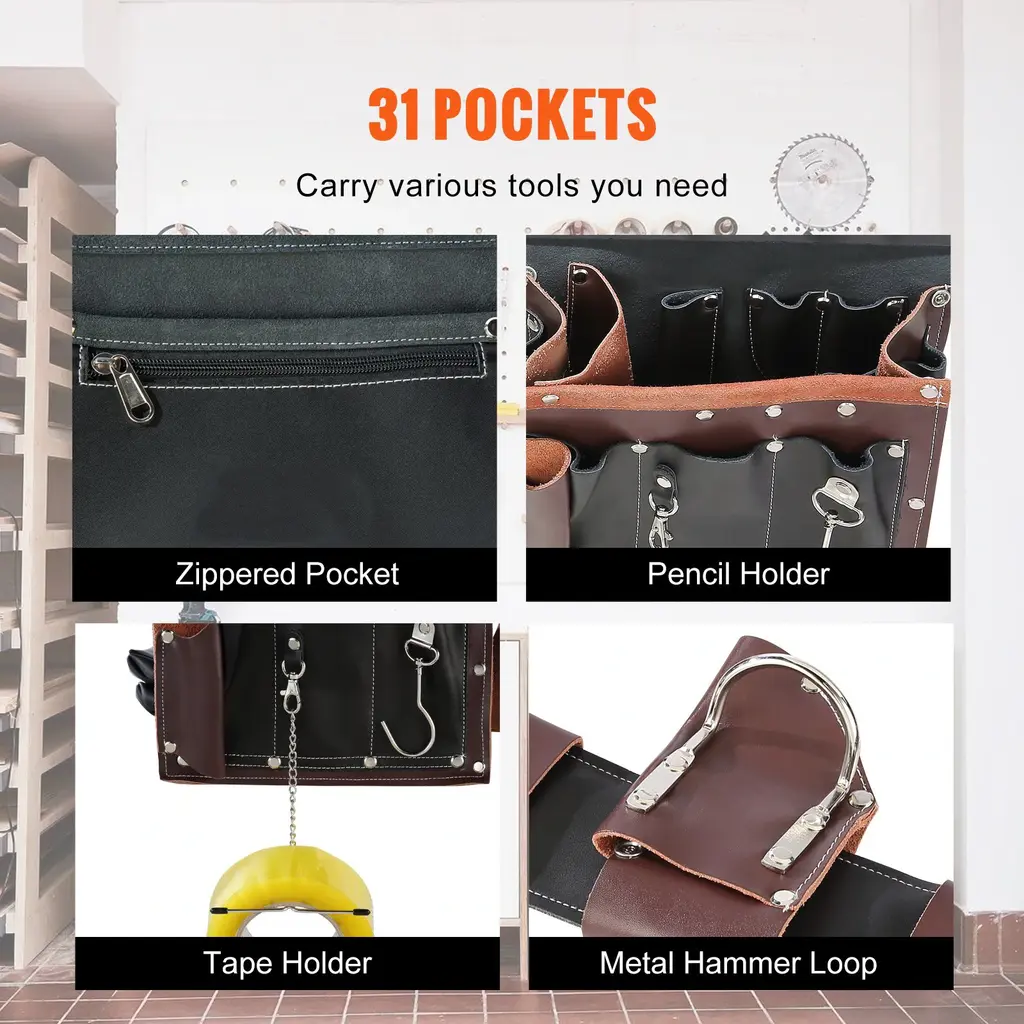 Black-Brown Adjustable Strap 31 Pockets Heavy Duty Tool Pouch Bag Ideal For Electrician And Woodworker - 60.2 X 15.5 X 4.7 In - Black-Reddish-Brown