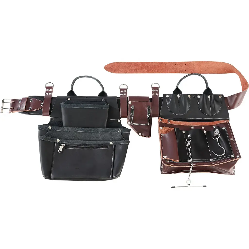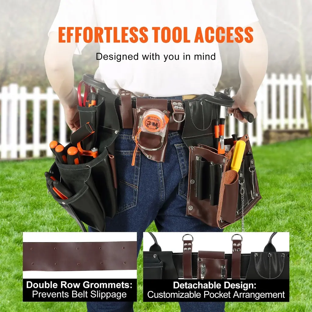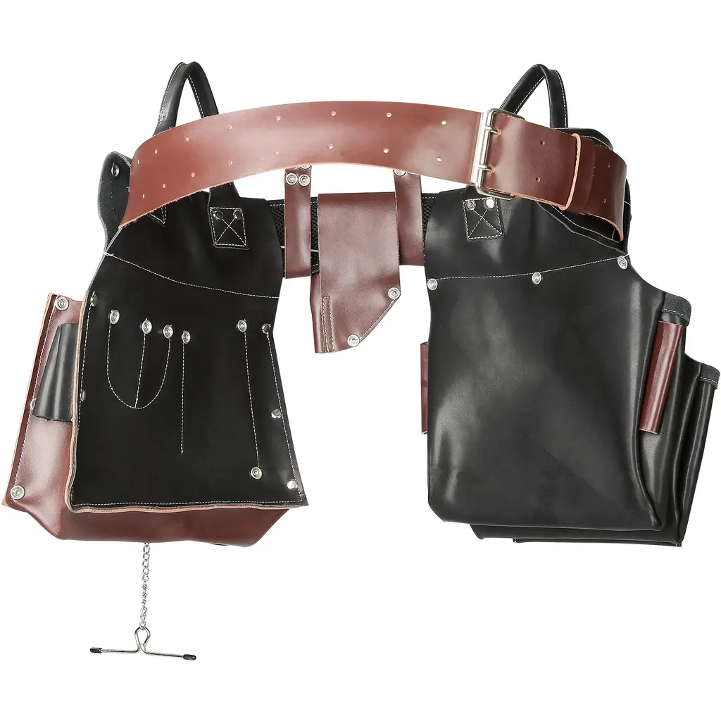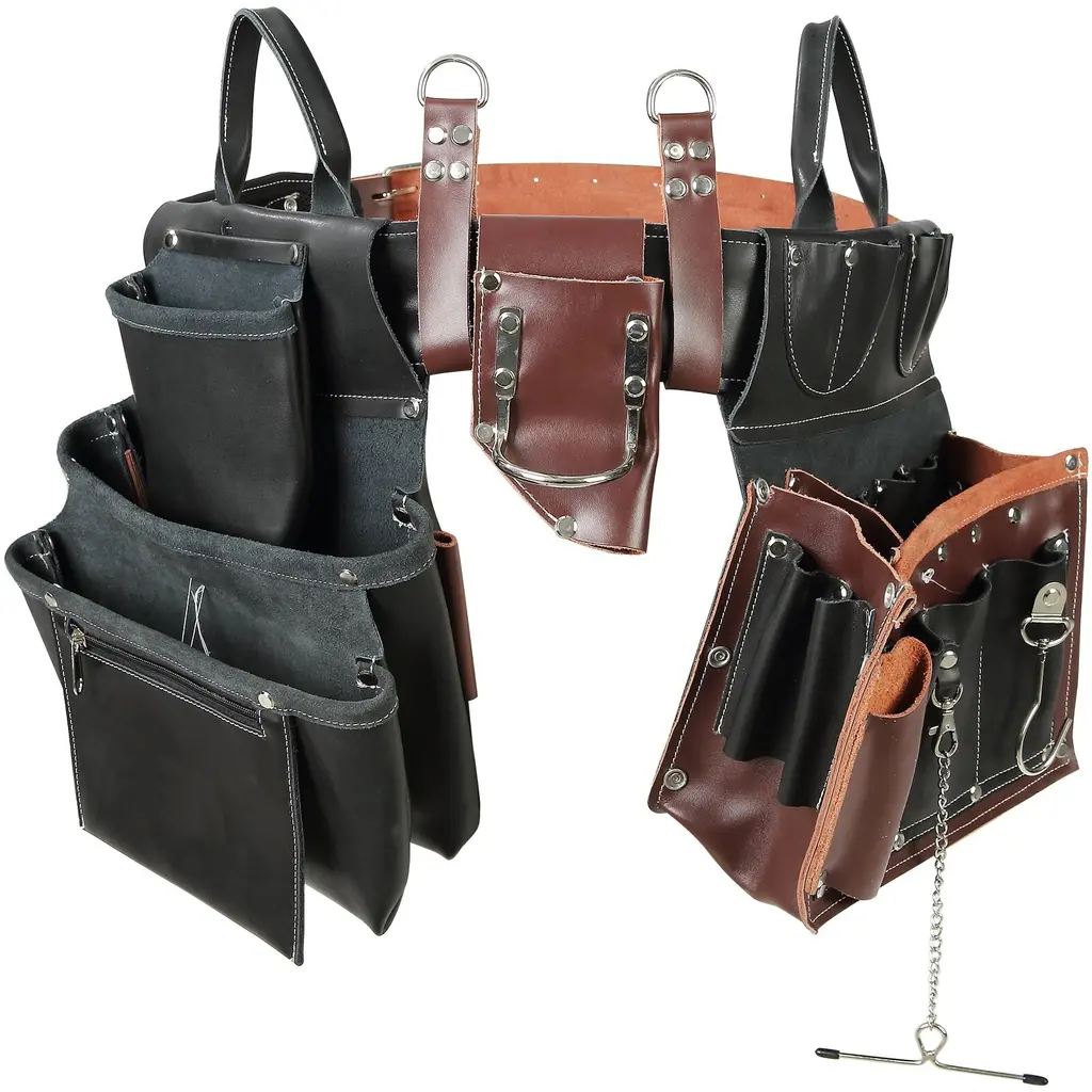 Black-Brown Adjustable Strap 31 Pockets Heavy Duty Tool Pouch Bag Ideal For Electrician And Woodworker - 60.2 X 15.5 X 4.7 In - Black-Reddish-Brown