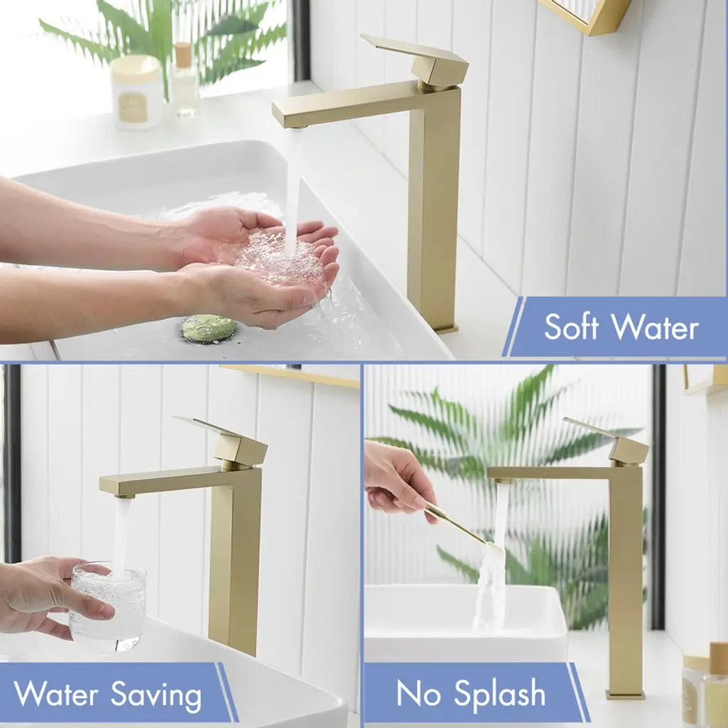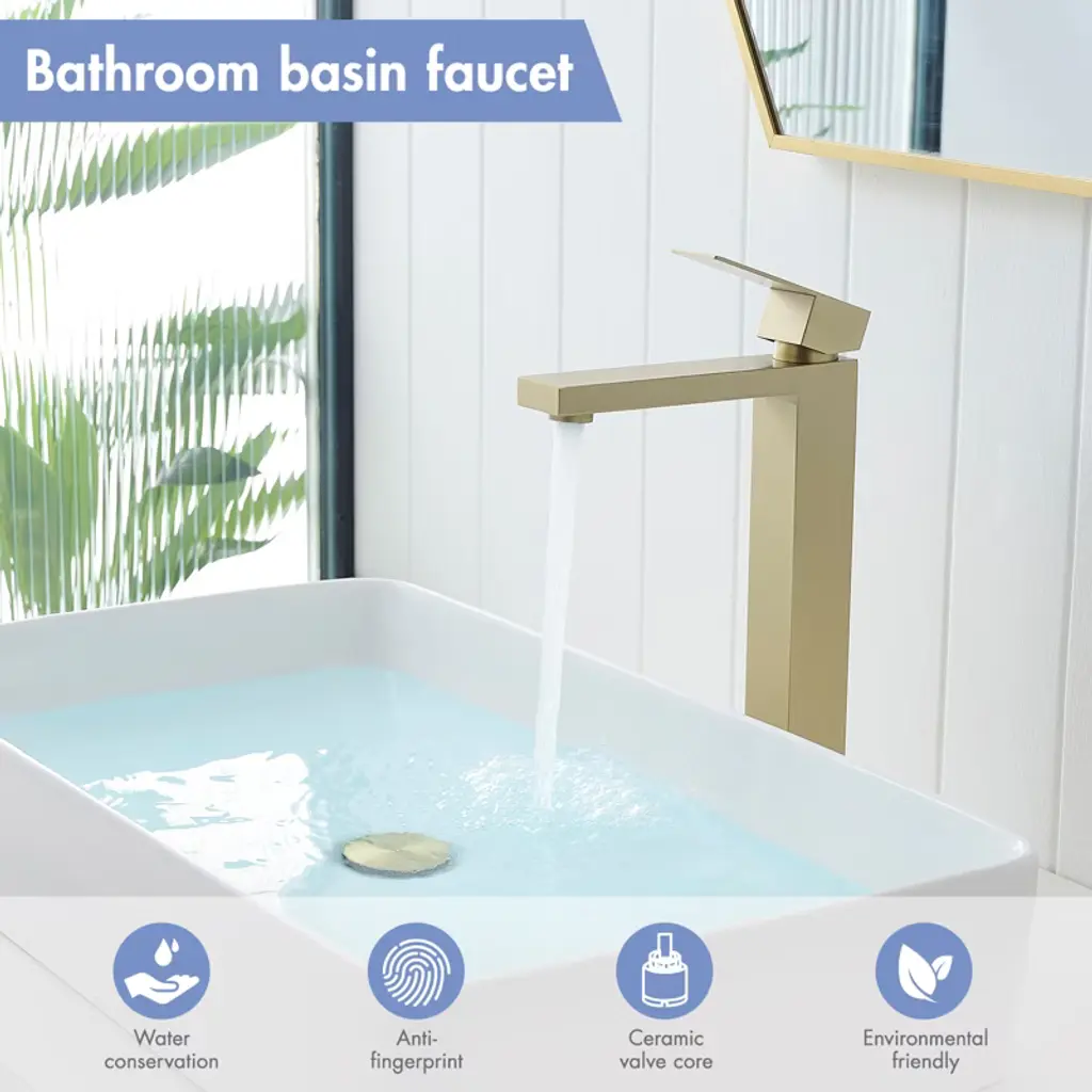 Modern black brushed bathroom faucet with single handle mixer and pop-up drain for convenient daily use.
