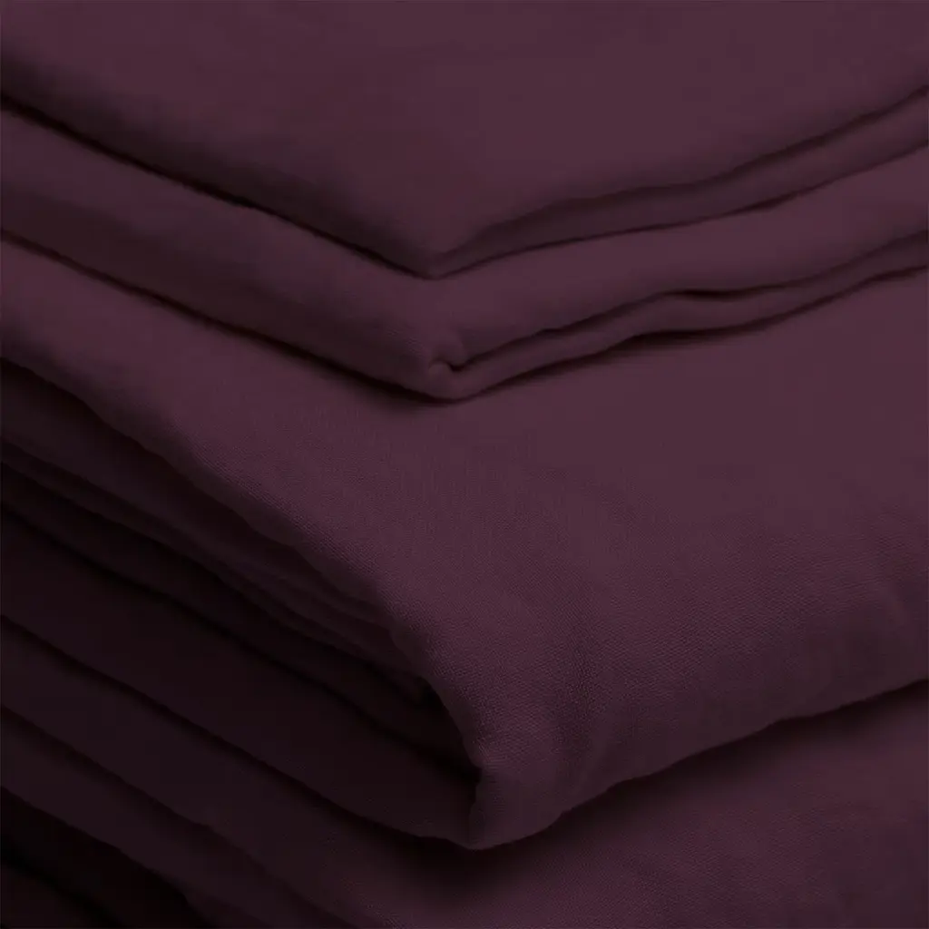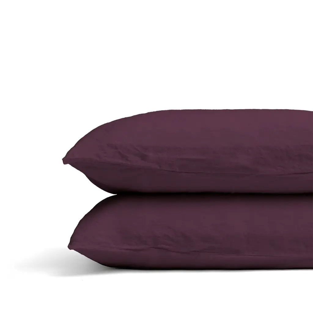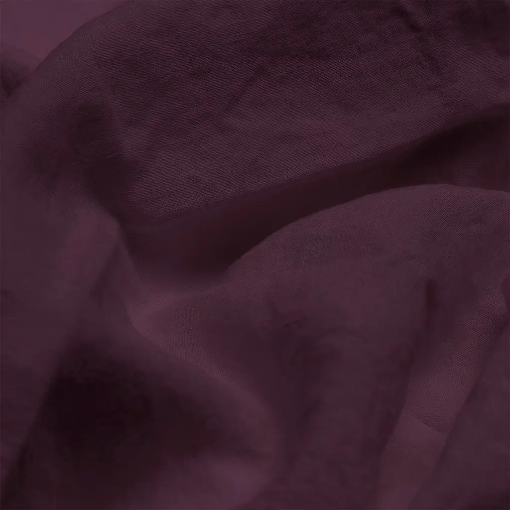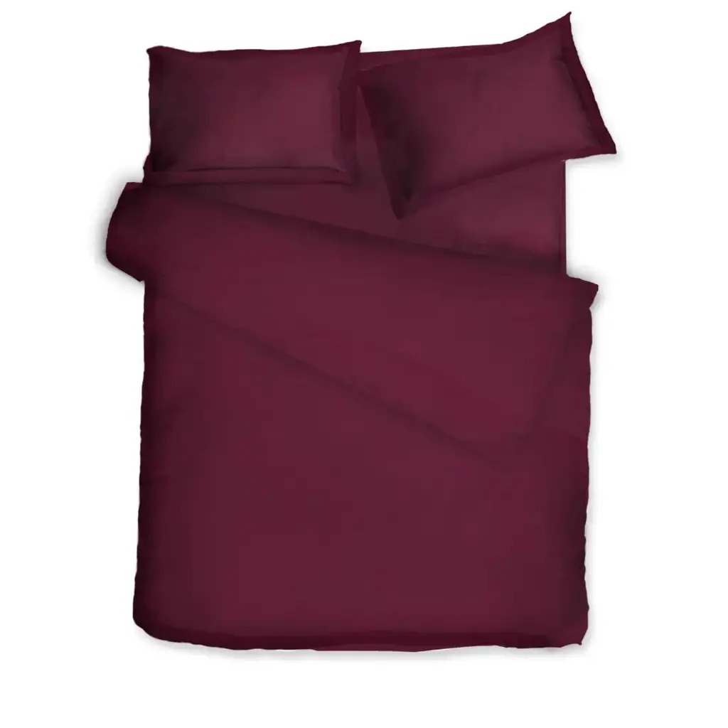 First-rate linen fibers dyed in a sophisticated shade of black cherry lend this stylish King-size-fitting bed linen set its intriguing charm. Counting a couple of pillowcases, a duvet cover, and a fitted sheet, it boasts impeccable softness thanks to a special washing method. Queen-size and standard-size versions are also available, please consult the Concierge for pricing and alternative color options.