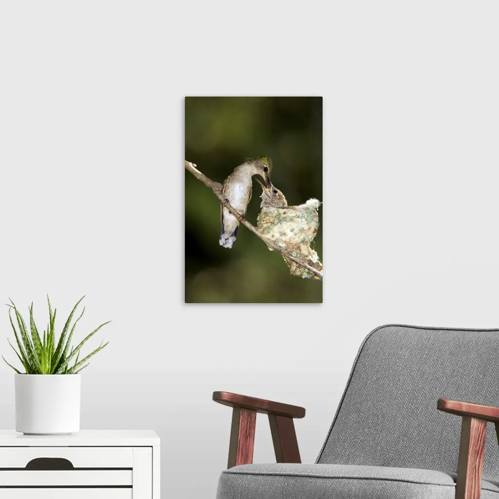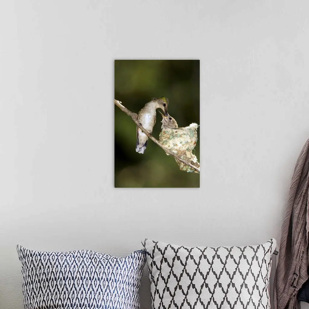 Black-chinned Hummingbird parent feeding chick in nest, North America wall art for home and office decor. Discover canvas art prints, photos, mural, big canvas art and framed wall art in GreatBigCanvas.com's varied collections.