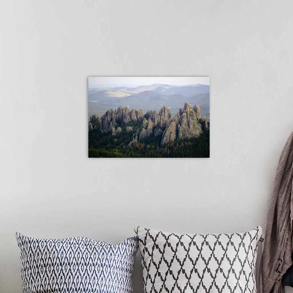 Black Elk Wilderness, South Dakota. USA. View of Cathedral Spires from summit of 7242 foot Harney Peak, highest point in South Dakota, Black Hills National Forest and Custer State Park.