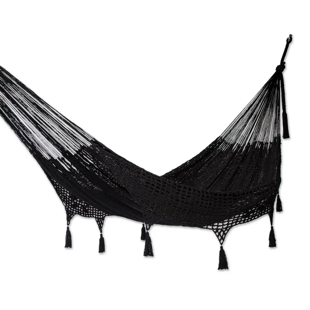 Black Hammock With Macrame Panels (Double)- Mirage In Black