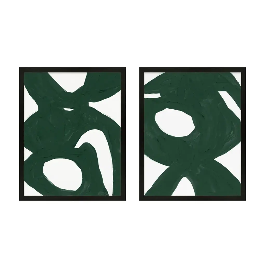 Black Ink. A reproduction of work by abstract artist Lee Lessem, this two-piece set strikes a delicate balance between fluidity and structure, softness and vitality, and mystery and clarity. Each piece is printed on paper in the USA, and arrives in a wooden frame with included hanging hardware.
