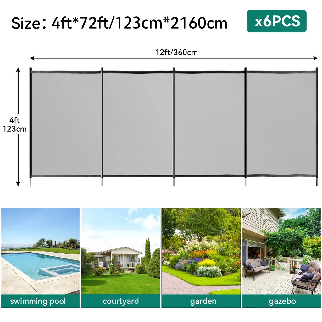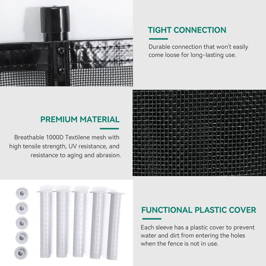Pool safety fence: Protects against unauthorized access or accidental drownings in your pool; Create a safe and private enclosed fence to protect your family and friends when you’re enjoying undisturbed recreation Features Built to last: Framed with premium composite aluminum and steel material to combat storm and heavy rain; Our pool fence specifically uses strong tensile Teslin mesh fabric that’s breathable, smooth, and cool to the touch, featuring strong performance against water, oil, acid & alkali, UV Easy diy installation: Easily install or remove this in-ground swimming pool fence by simply drilling holes and inserting the poles; Included are a drilling template, instructions, hardware, hooks, and caps to cover holes Customizable structure: The hooks and eyes tightly hold each section of the above-ground pool fence together; Our pool fencing can fit around pools of all shapes and sizes, and you can choose different sections based on your needs Versatile use: You can use this safety fence to protect not only your pool, but also as a decorative fence or protective barrier for your pond, garden, or deck; Contact us with any questions and we’ll be there to help