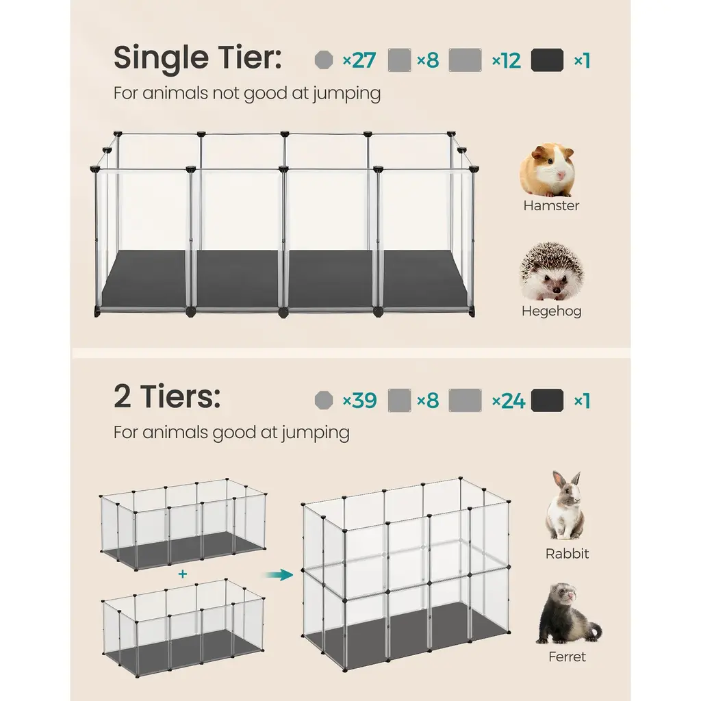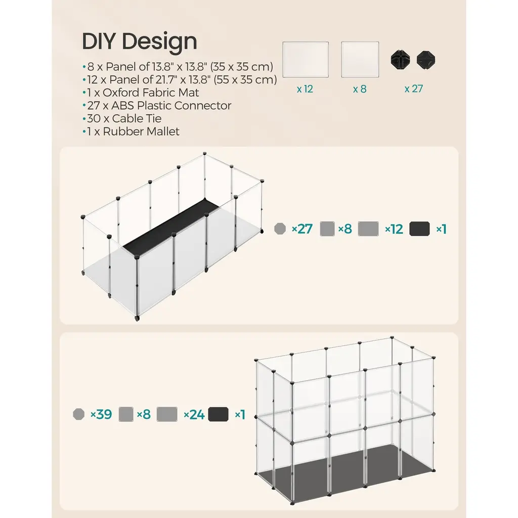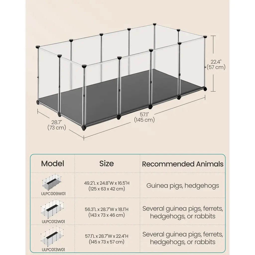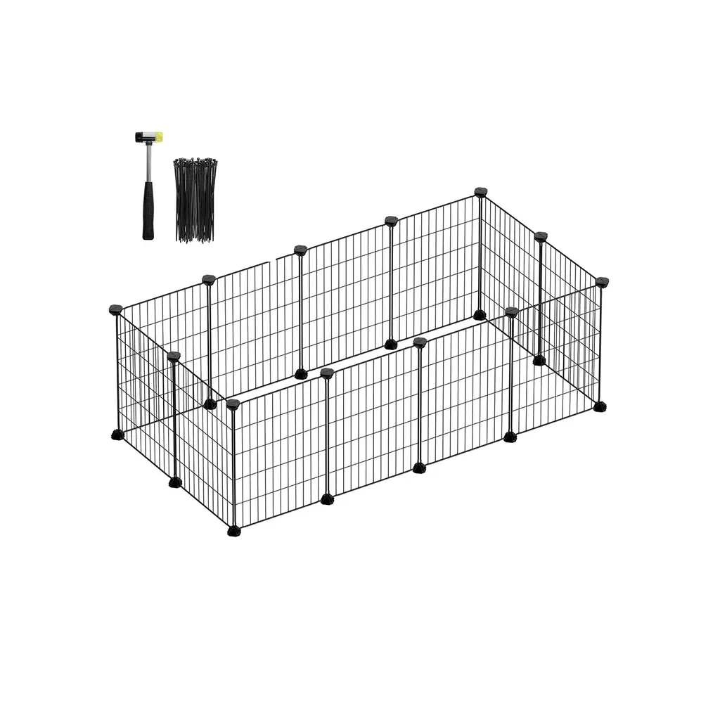 Black Metal Guinea Pig Playpen With Removable Oxford Fabric Mat, Foldable Pet Enclosure - 56.3"l X 28.7"w X 18.1"h