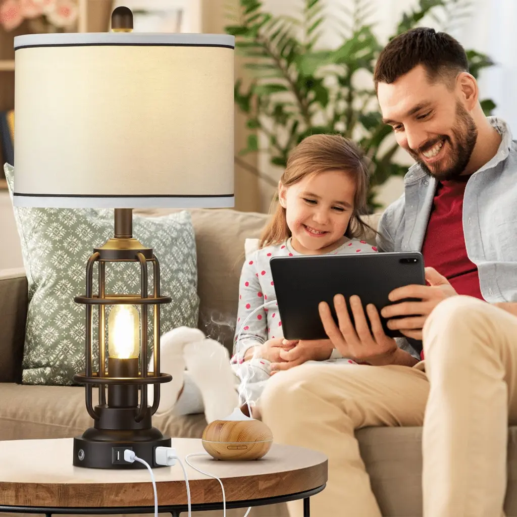 The table lamp integrates the nightlight. 2in1 design adopted the simple design style, and highlight the functionality and aesthetics. Use LED light source provide bright and balance lighting. Also it has lower power consumption and long life. At the same, it has independant switch to control the top light and the nightlight. The nightlight supports 3-way dimming. Black lamp frame(durable, strong, stereoscopic) can be easily matched with a variety of decoration styles. Furthermore, the lamp base comes with modern popular functions for smart devices(USB port, Type-C port, AC outlet). Finally, its special appearance makes it as a main part at any space.Overview of features: