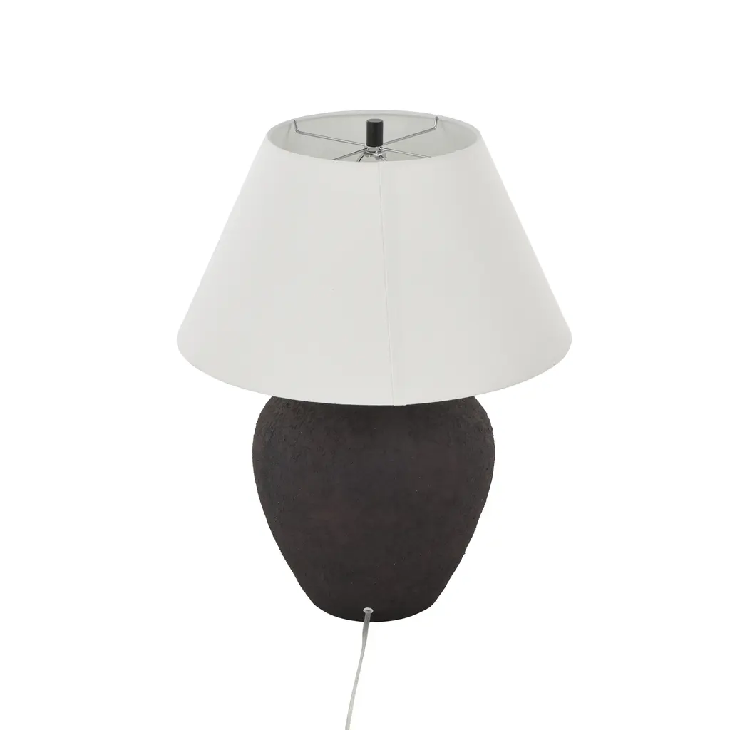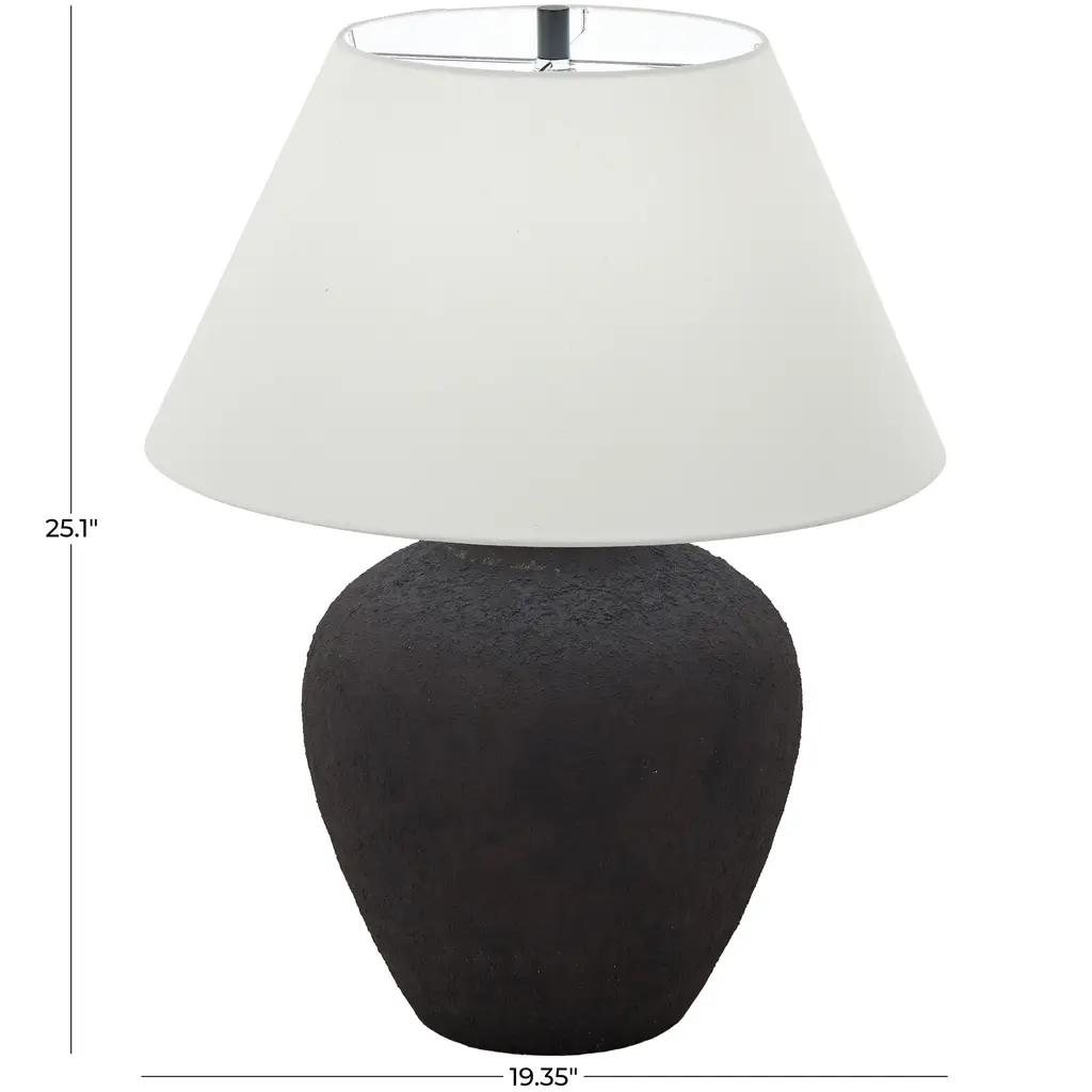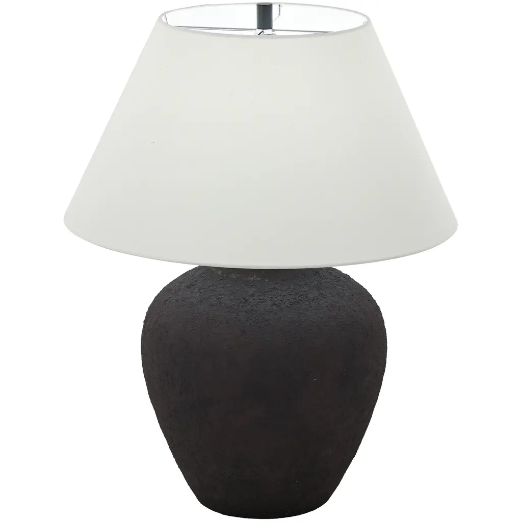 Black Or Brown Ceramic Wide Rounded Textured Room Table Lamp With White Linen Shade - Black