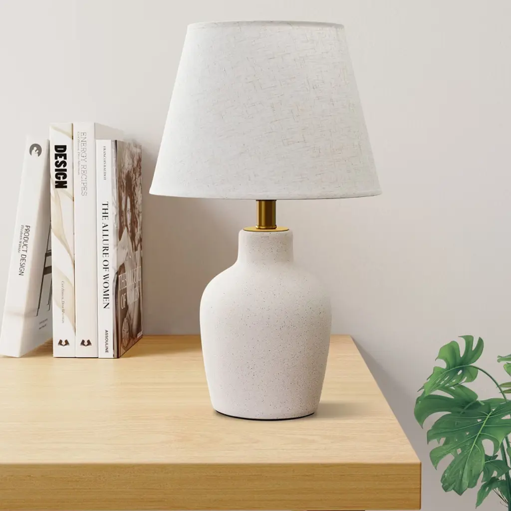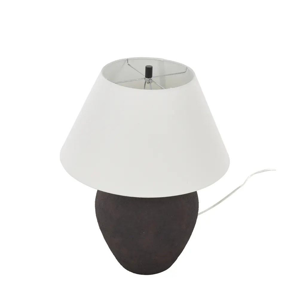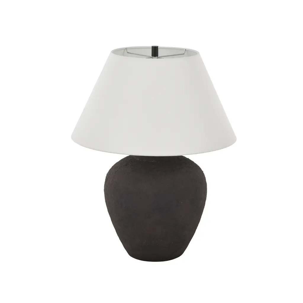 Black Or Brown Ceramic Wide Rounded Textured Room Table Lamp With White Linen Shade - Black