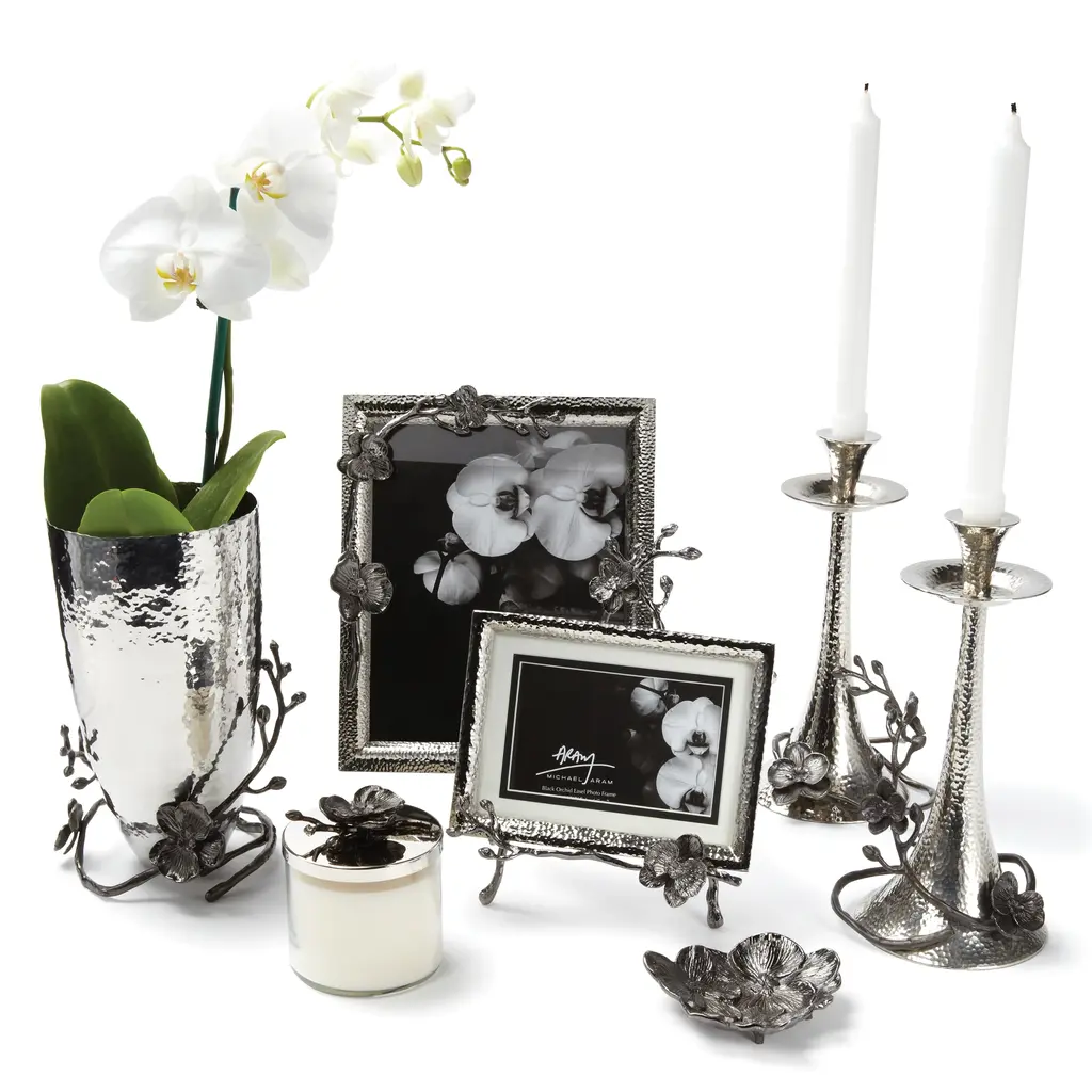 The "Black Orchid" Collection takes its inspiration from the intricacies of form and texture found in foliage from around the world. By interpreting plant forms in cast metal, Aram presents work which is evocative of a natural environment transformed and redefined. Each piece is an intimate expression of Aram's individual creativity as well as an object of infinite and timeless meaning.