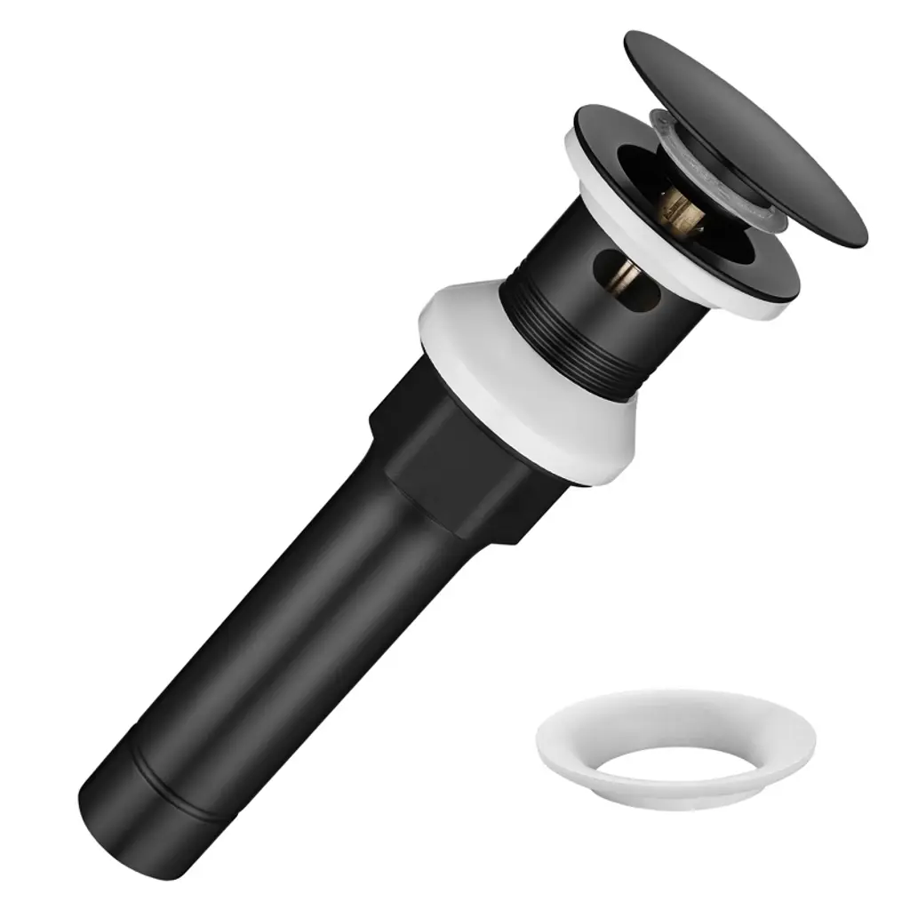 Black Pop Up Sink Drain With Overflow Standard 1.25" Od Pipe And Fits 1.75" Drain Hole Openings Renovators Supply - Black