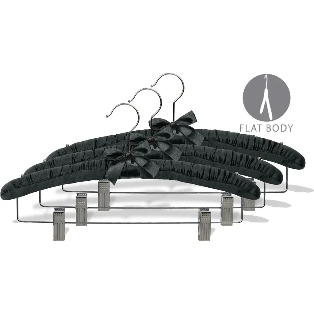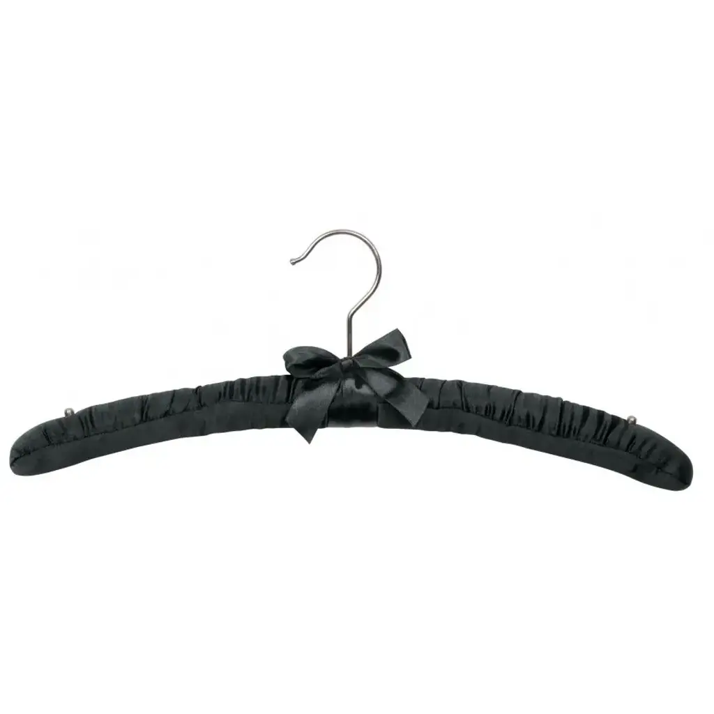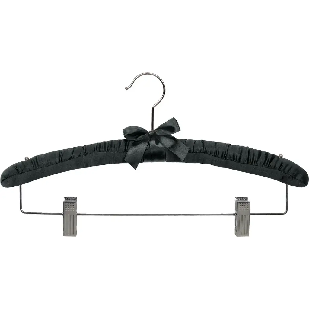 Black Satin Combo Hanger With Adjustable Cushion Clips, Padded Wood Hangers With Studs For Shoulder Straps - Box Of 48