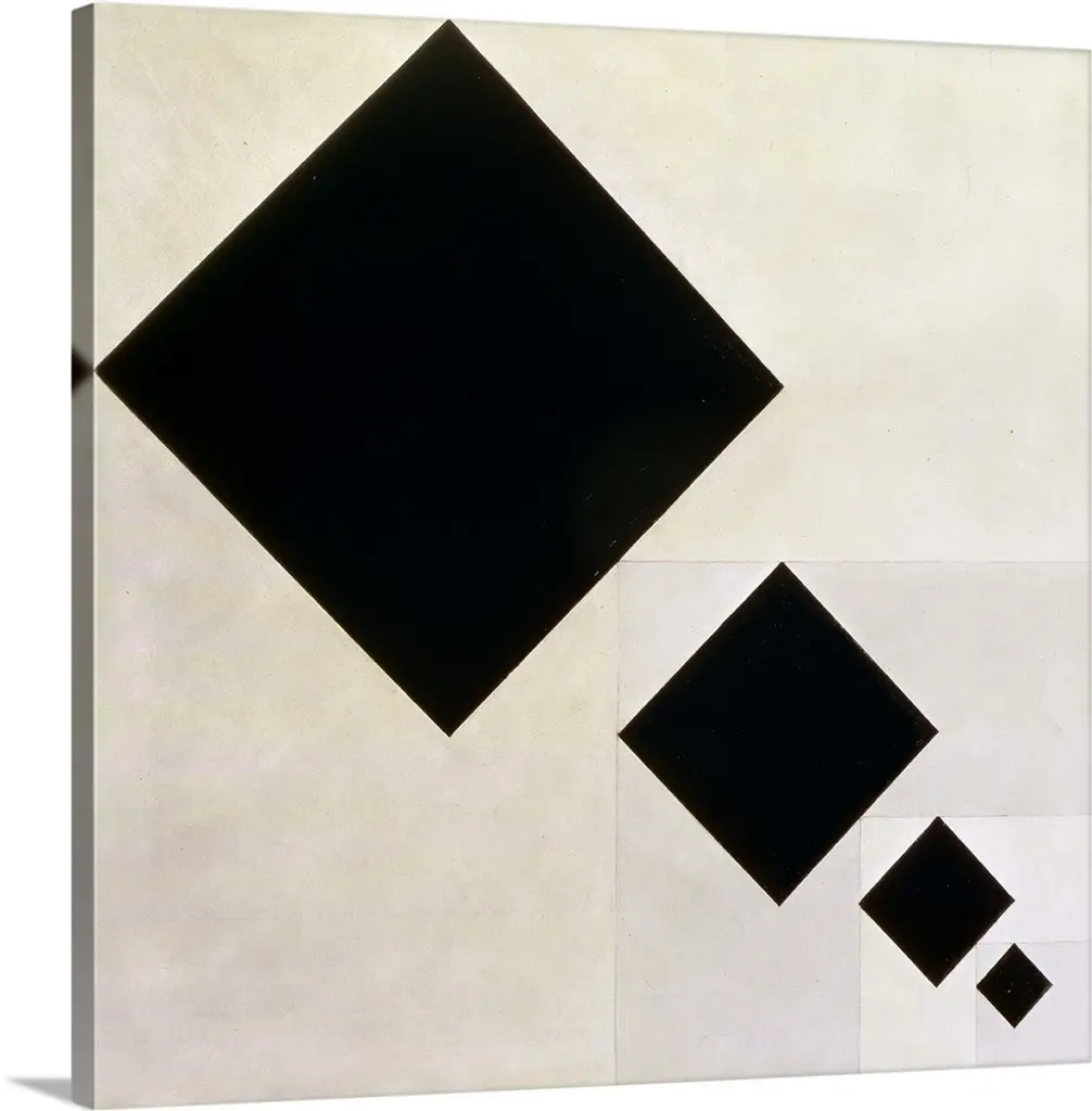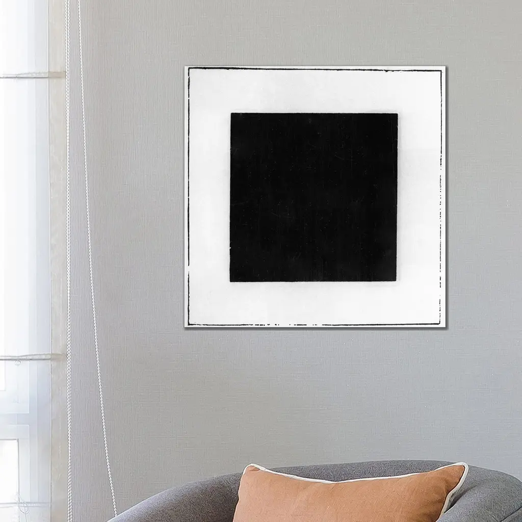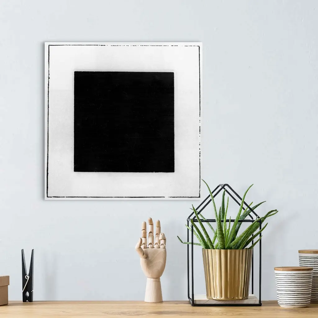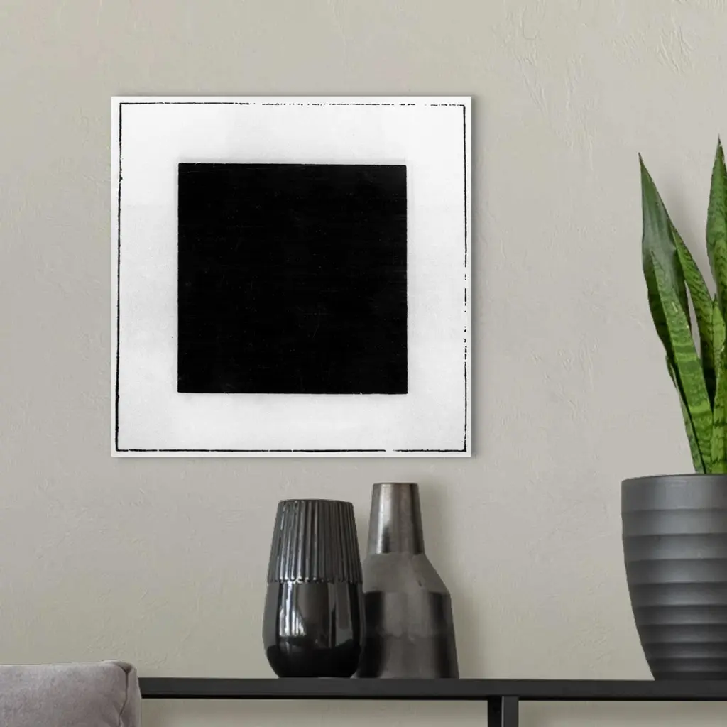 A reproduction of "Black Square" by Kasimir Malevich from the collection of the State Tretyakov Gallery.