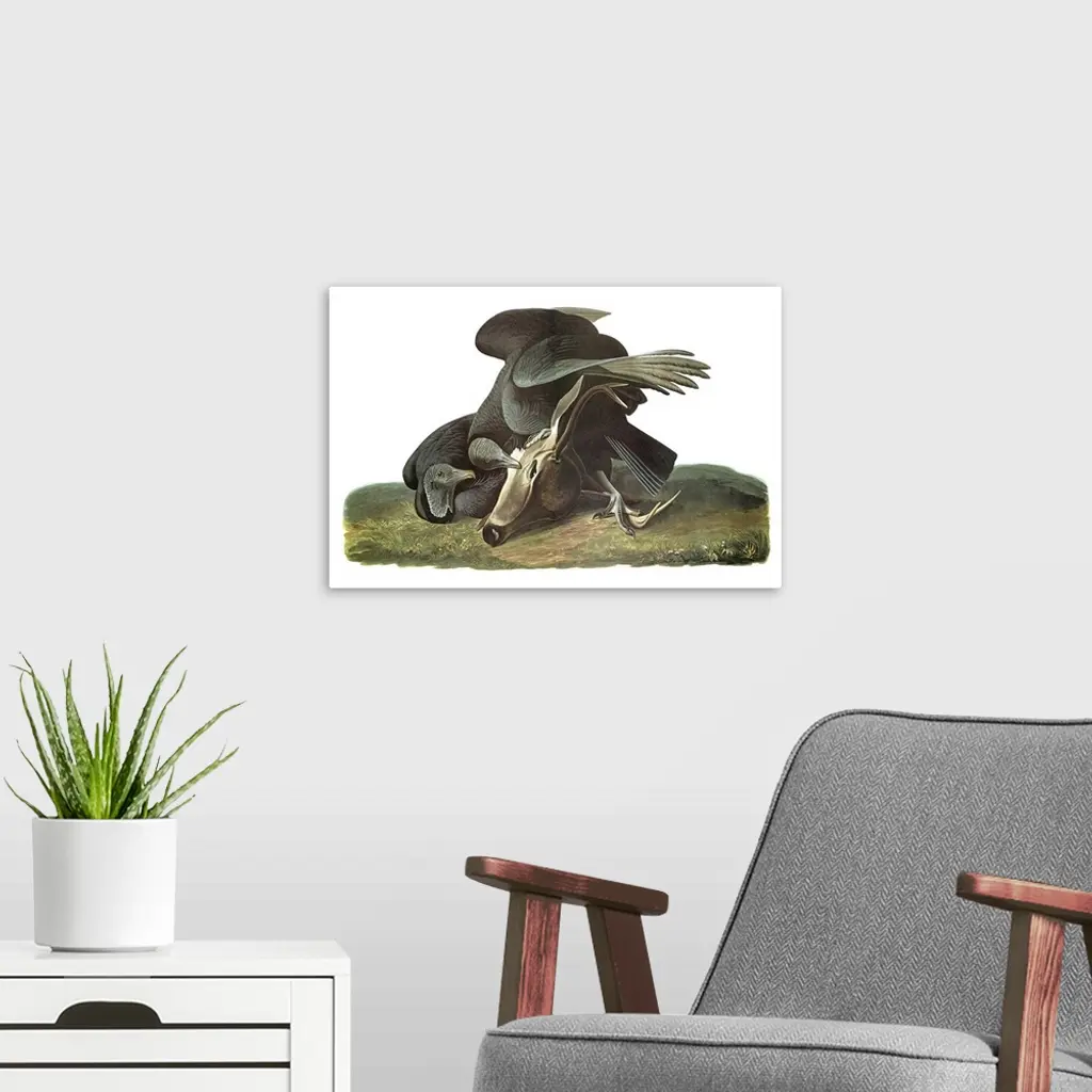Black Vulture (Coragyps atratus). Engraving after John James Audubon for his 'Birds of America,' 1827-38.