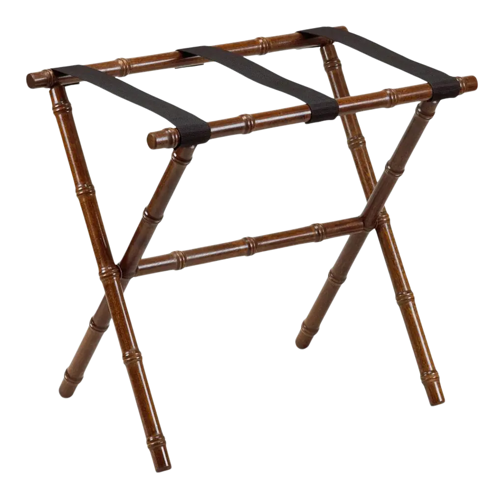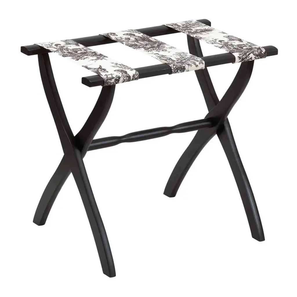 Black Wood Contour Leg Luggage Rack With 3 Black Toile Straps