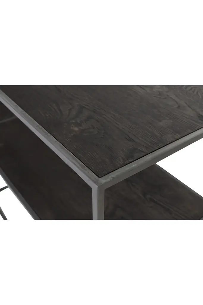 The Illusion Toprack by Versmissen is the perfect organization essential for any living space, bringing both style and convenience. It boasts a black steel frame with an oak veneer in a natural dark finish. It features two shelves, perfect for displaying decor items or keeping essentials handy. The spacious shelves provide storage space for books or other personal items, adding practicality to its simple form.