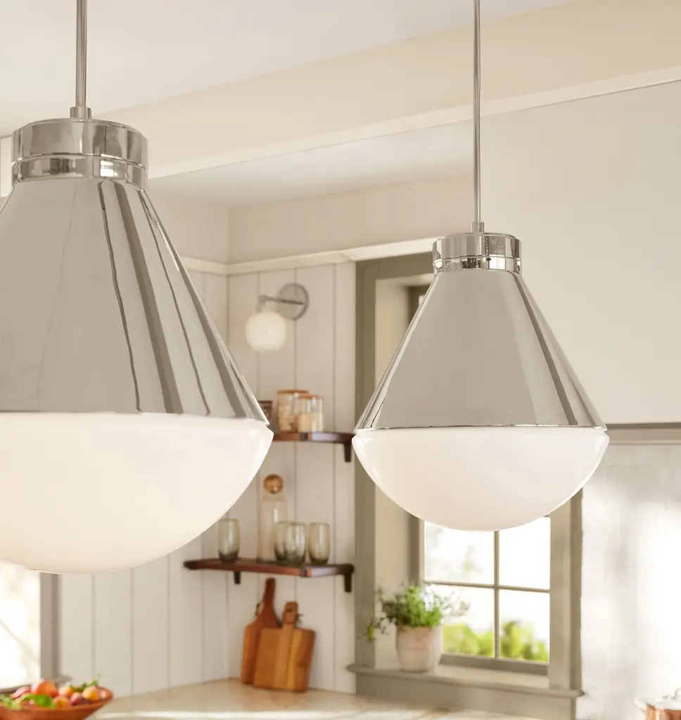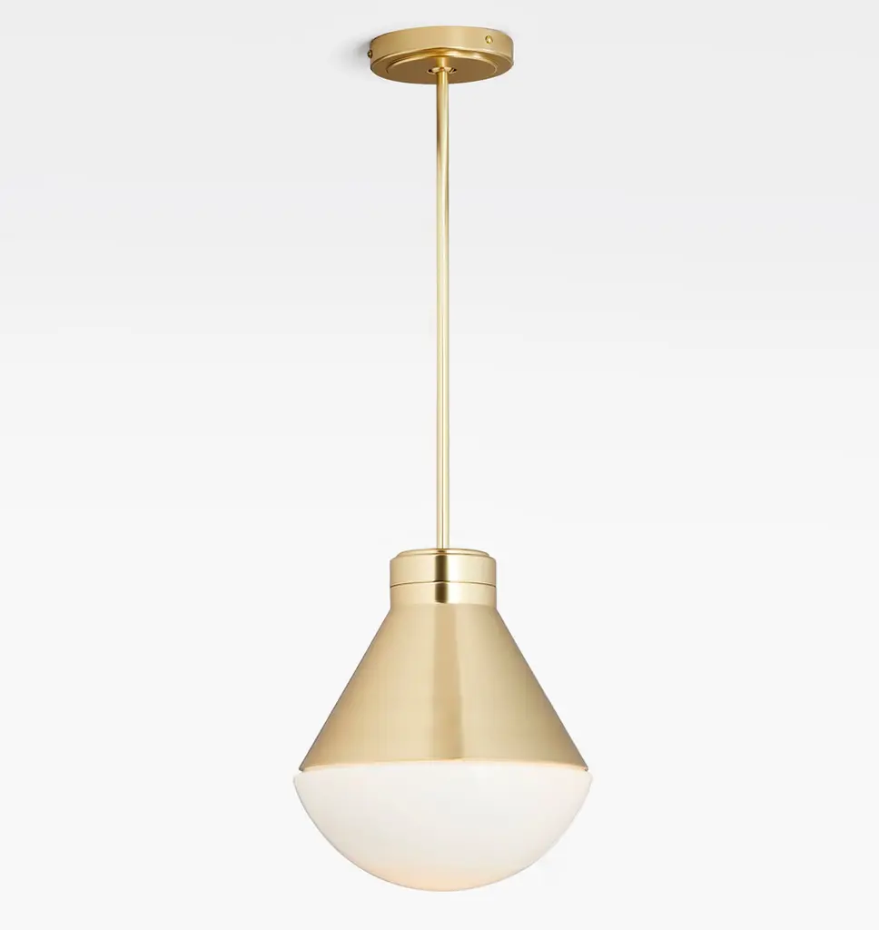 Blaine features a layered shade and an angled silhouette to cast a warm glow above and below.