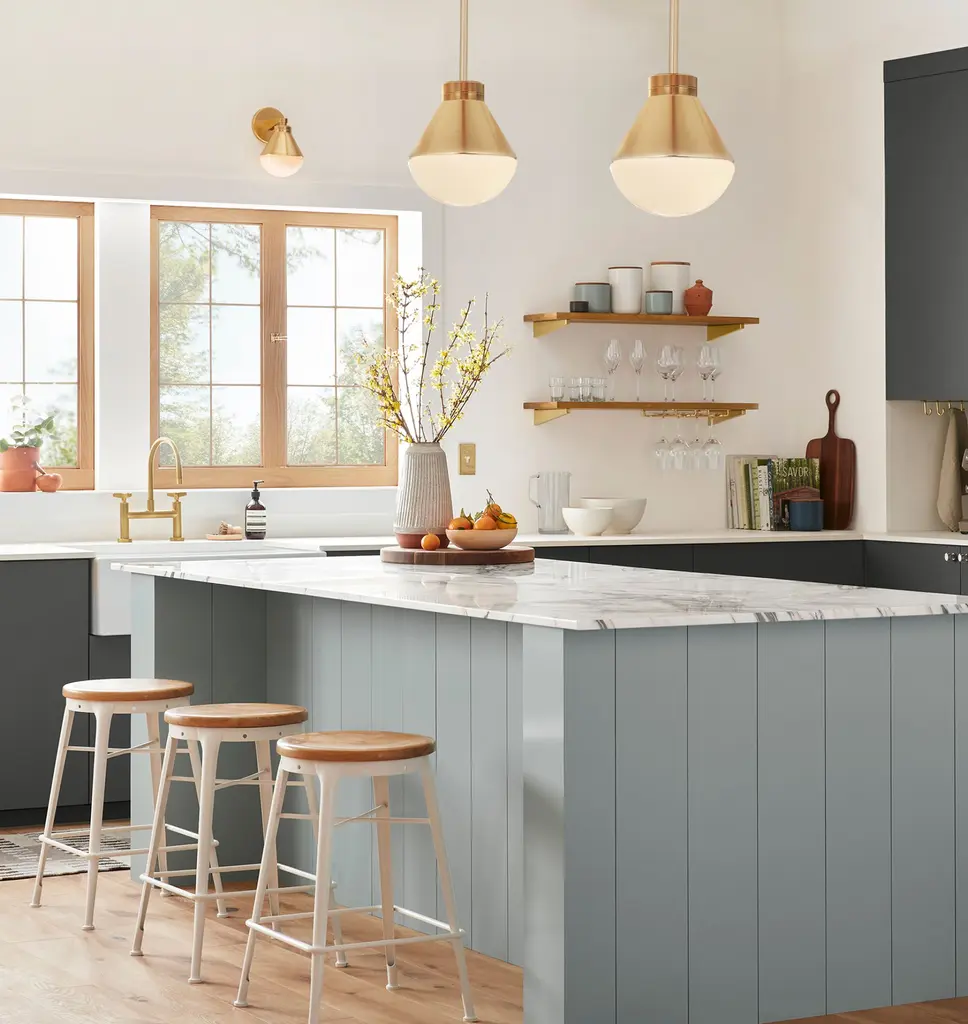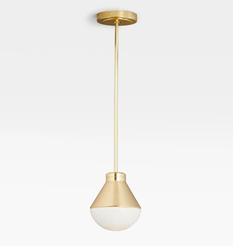 Designed to coordinate with our Blair Hardware Collection, our Blair Lighting Collection is a nod to 1940s French industrial lighting and features a brass fixture with a cased white glass shade. With clean lines and a minimalist design, the Blair Collection plays with geometric forms—adding a light, sculptural touch to any style kitchen. The Blair Lighting Collection is available in custom lengths, and as a flush mount, pendant, or wall sconce. Available in several finish options.