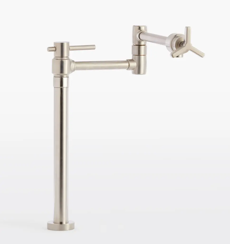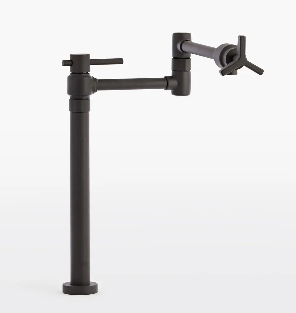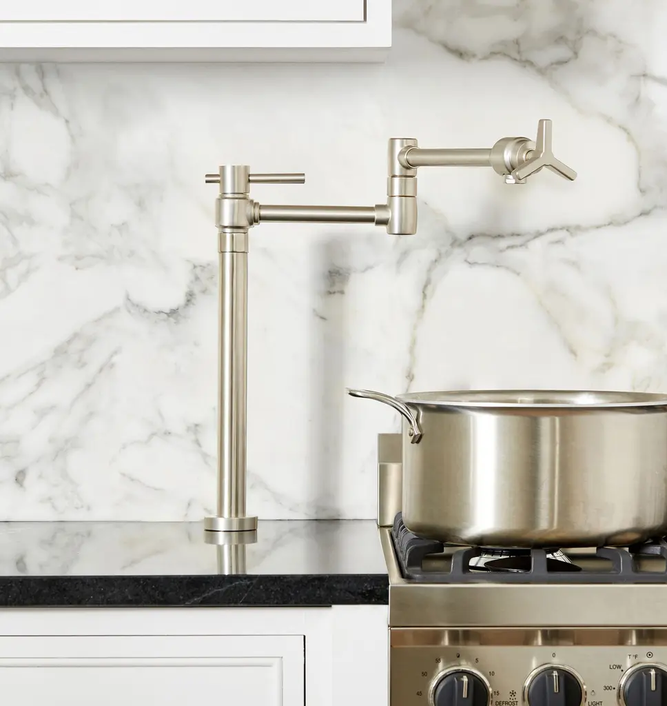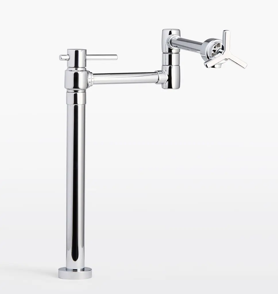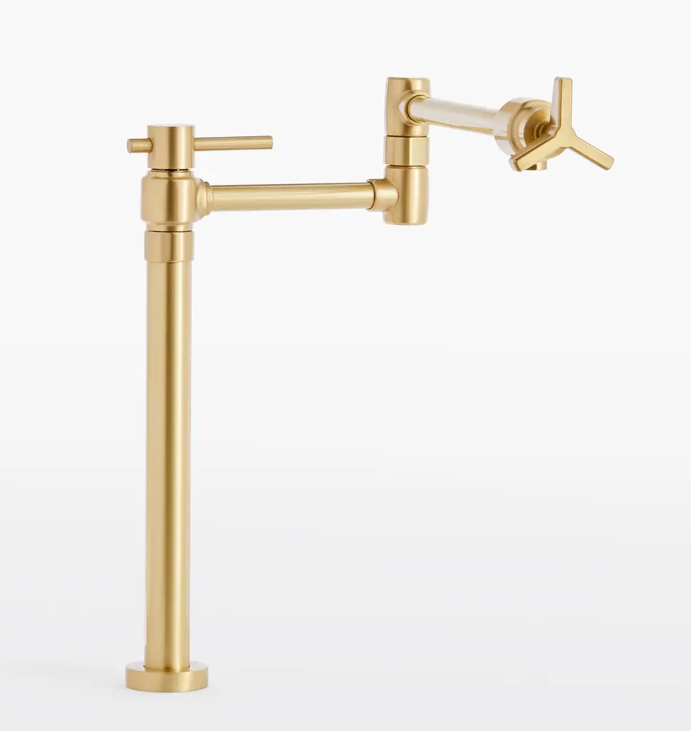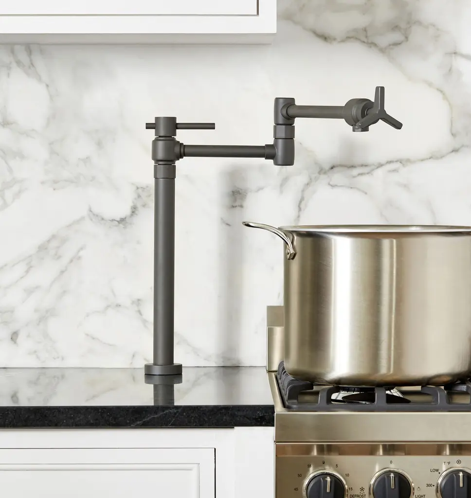Made with solid brass, our Blair Deck Mount Pot Filler features an industrial-inspired cross-handle design with streamlined details. With a flow rate of 1.5 gallons per minute, Blair adds versatility and function to any kitchen cookspace.