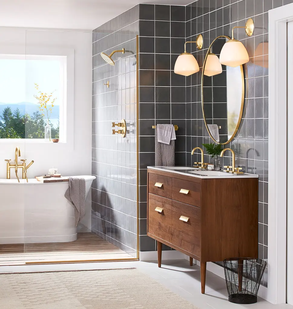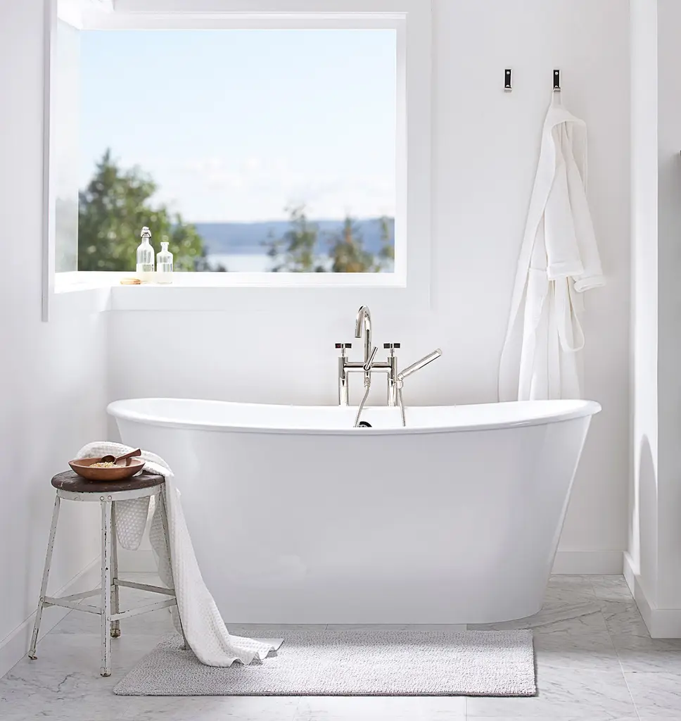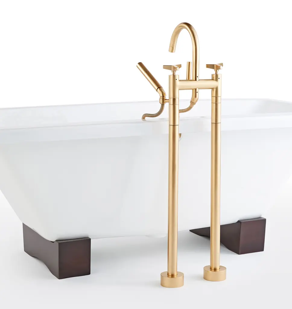 Made with solid brass, Blair features industrial-inspired cross knobs with streamlined curves. Ideal for use with free-standing tubs, our floor-mounted design will bring a crisp, clean look to your bath.